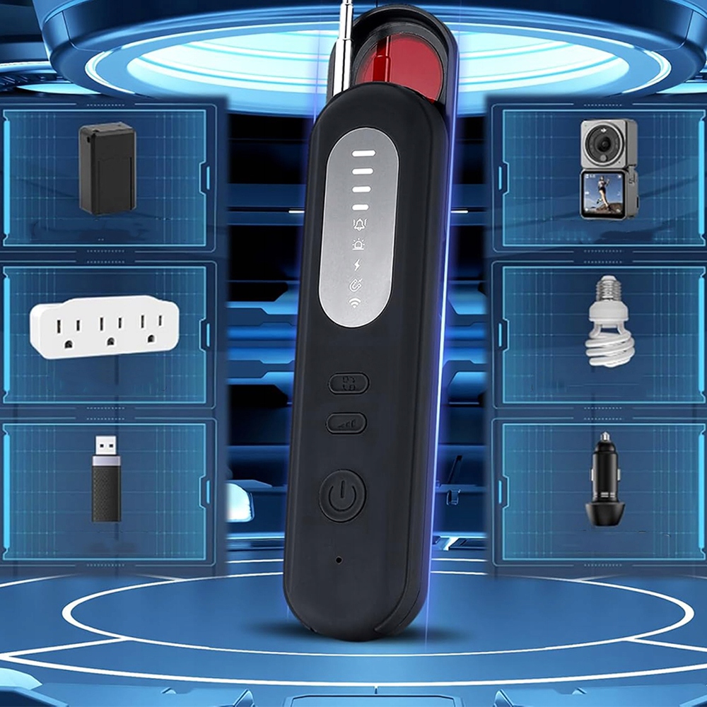 • Ten detektor kamer wykorzystuje technologię pasywnego skanowania laserowego na podczerwień do wykrywania urządzeń podsłuchowych, lokalizatorów GPS i ukrytych kamer.