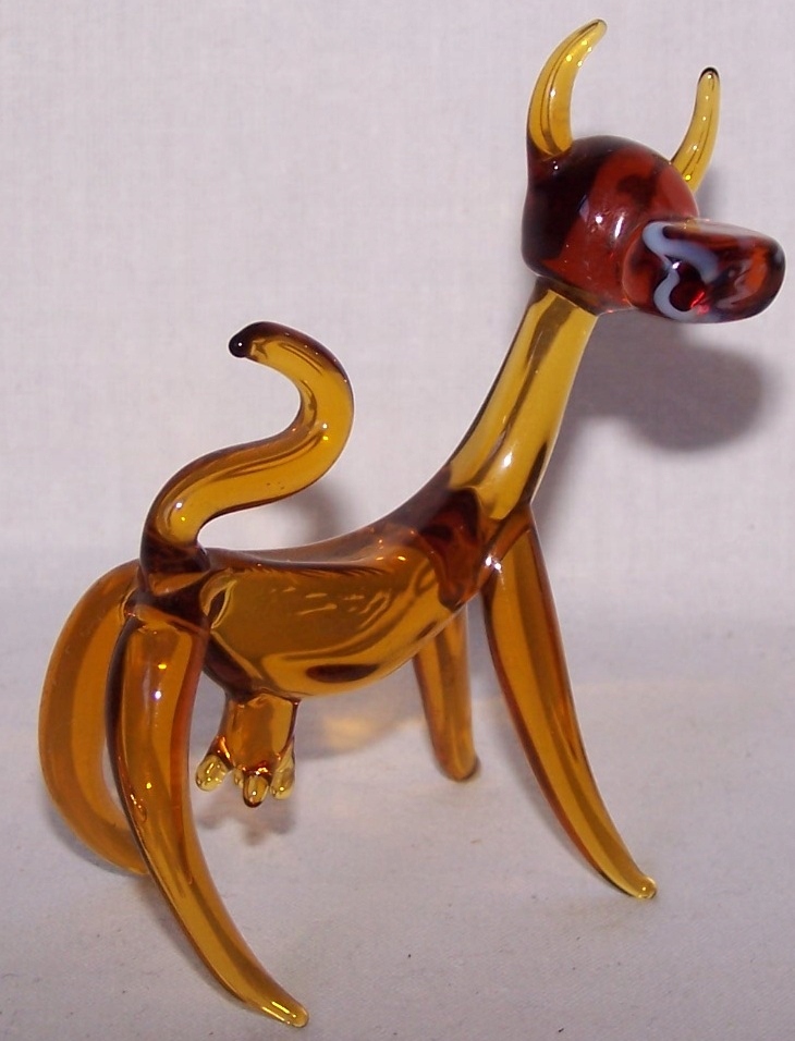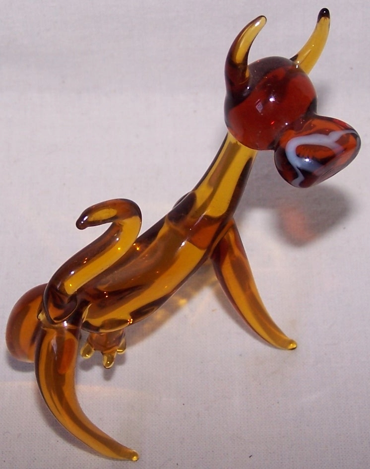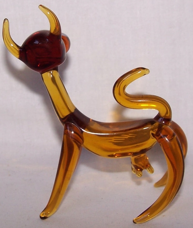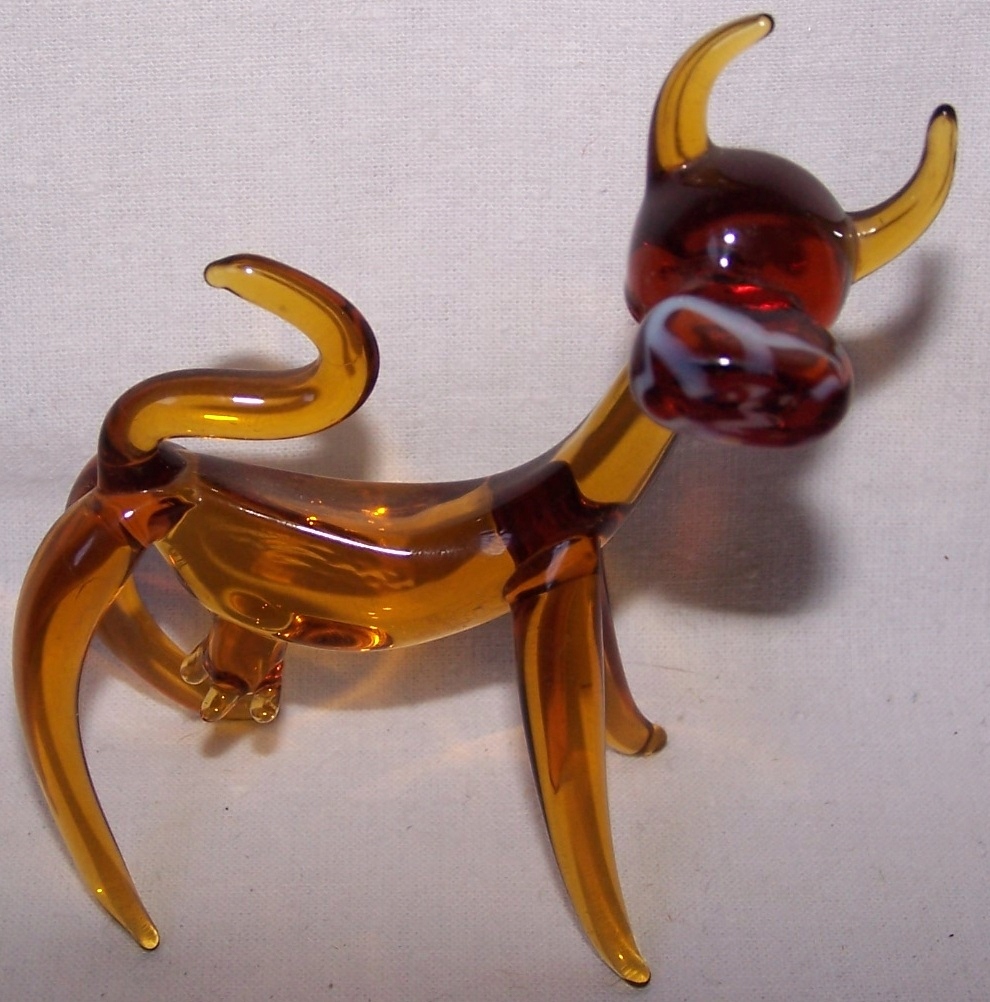 Przedmiotem aukcji jest szklana, stara, artystyczna figurka. To krowa w cudownej, lekko uproszczonej formie, a jednak niezwykle artystyczna, wręcz bajkowa. Wykonana z solidnego, miodowo-bursztynowego szkła zachwyca kształtem i ponadczasową barwą. Z informacji uzyskanych od poprzedniej właścicielki wiemy, że krowa, wraz z innymi zwierzątkami przyjechała do Polski jako pamiątka z z wycieczki zagranicznej do Włoch, która obejmowała również wizytę w Murano, ale czy stamtąd zostały przywiezione tego nie wiem. Na pewno zostały wykonane ręcznie, na co wskazuje typowy dla takich wyrobów sposób formowania zdobień. Na pewno mają ciekawą formę, kształt i prezentują się zjawiskowo. Co równie ważne, figurki zachowane są w doskonałym stanie i będę te pozostałe sukcesywnie wystawiał na licytacje. To idealna rzecz do ozdoby każdego miejsca właściwie, ale też wspaniałe okazy do kolekcji szklanych figurek zwierząt.