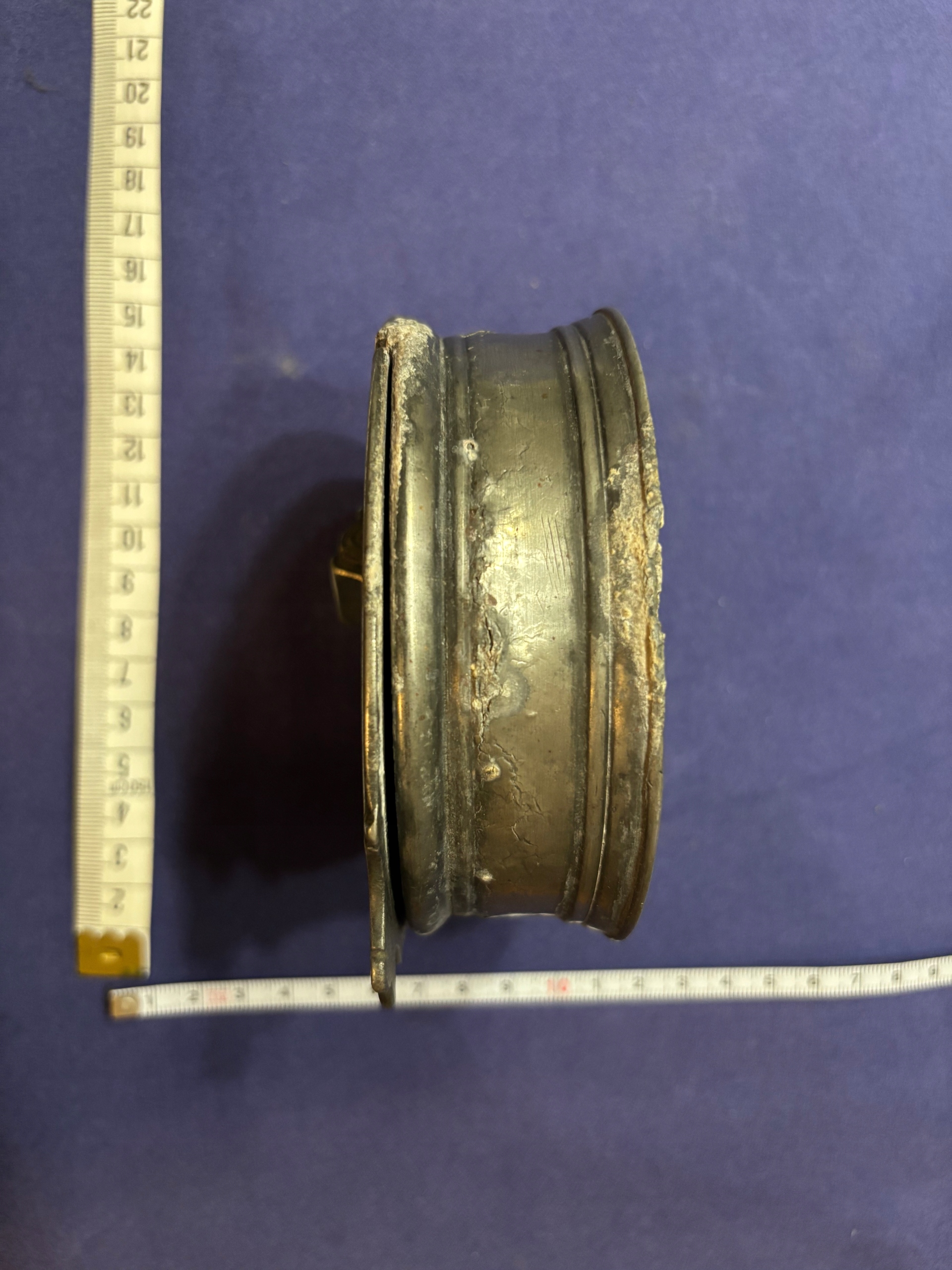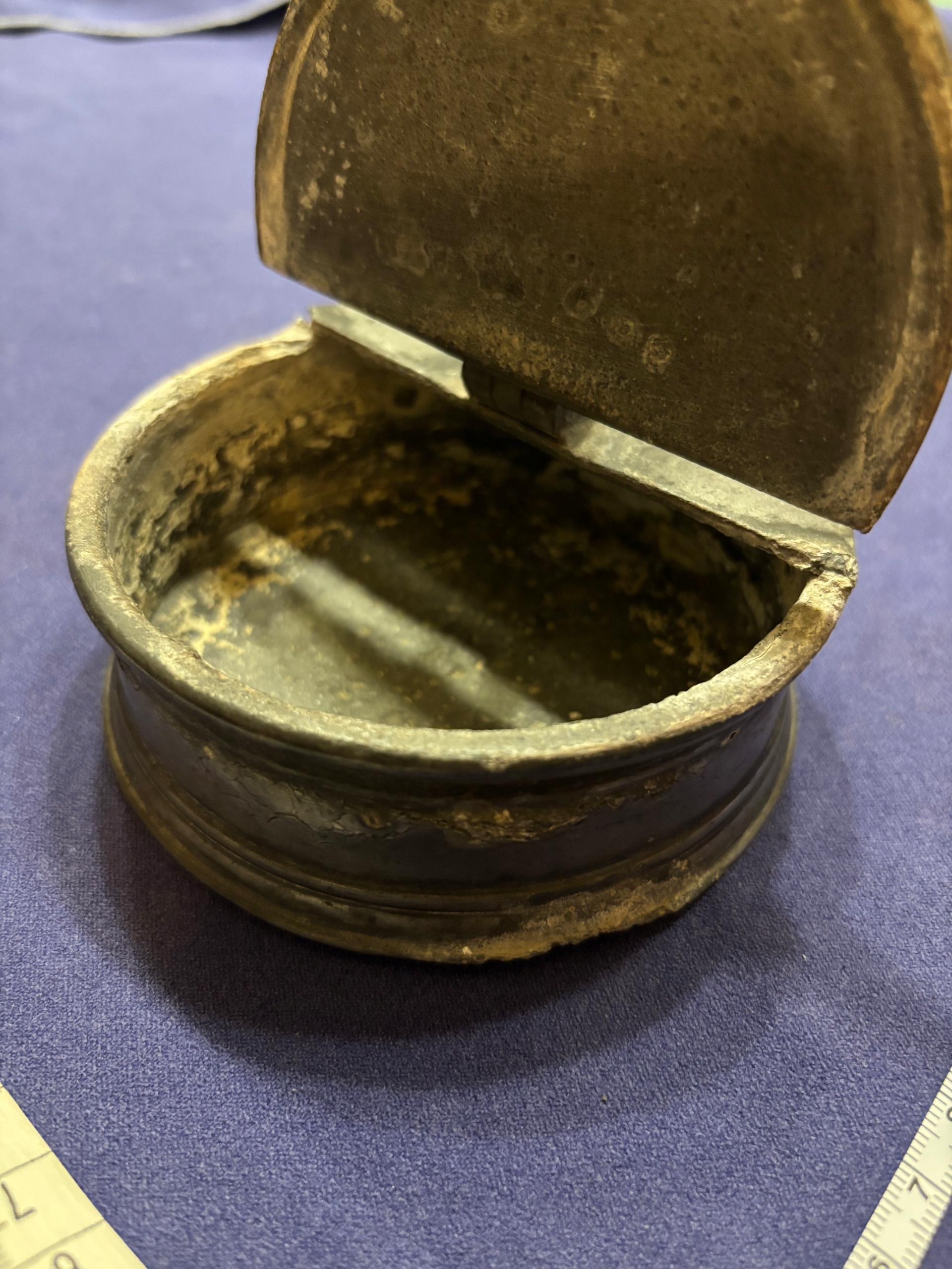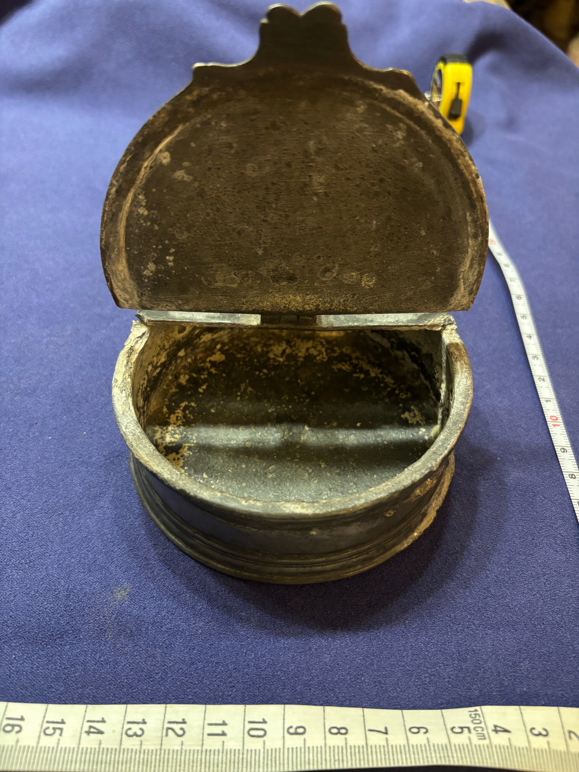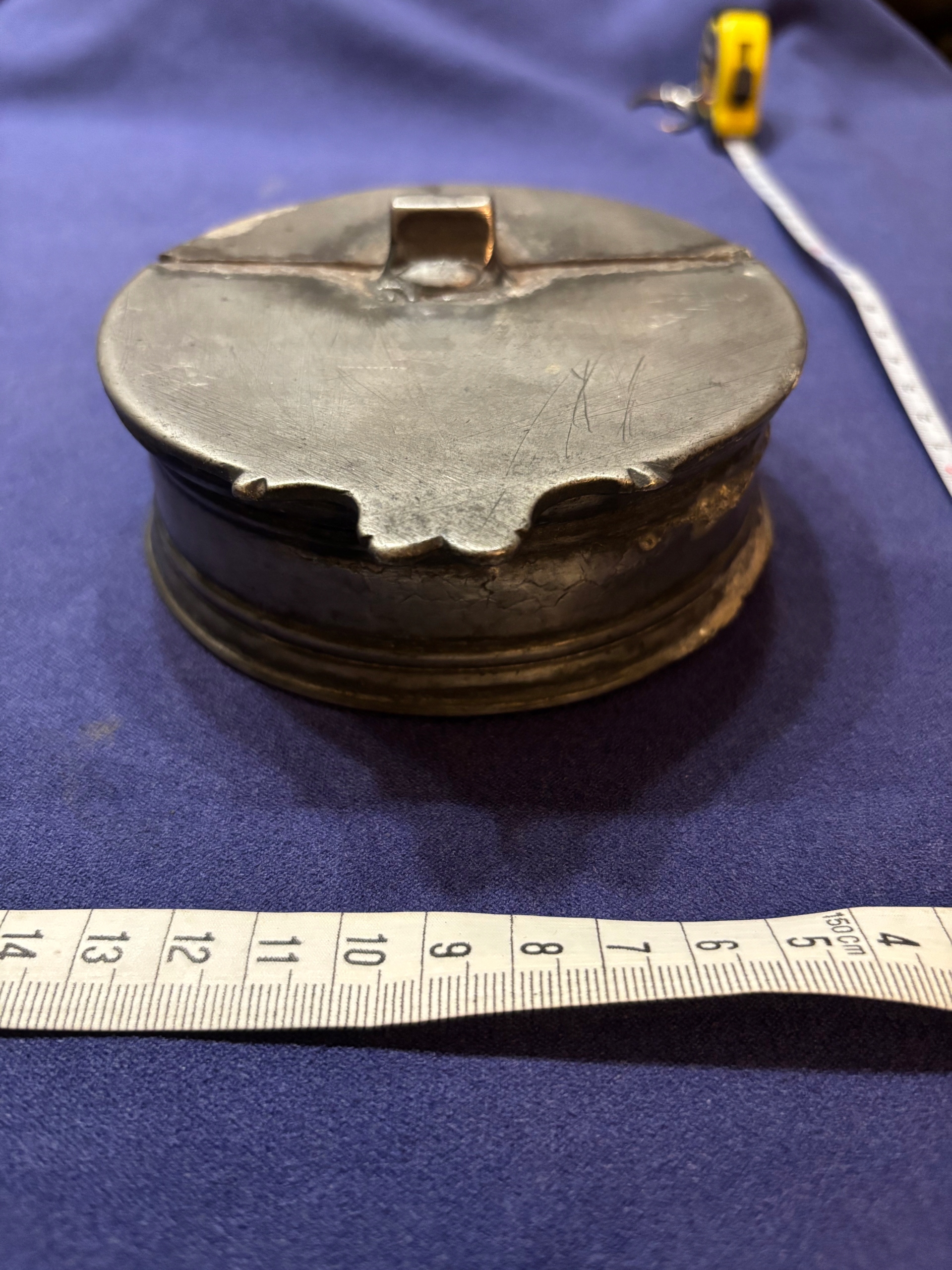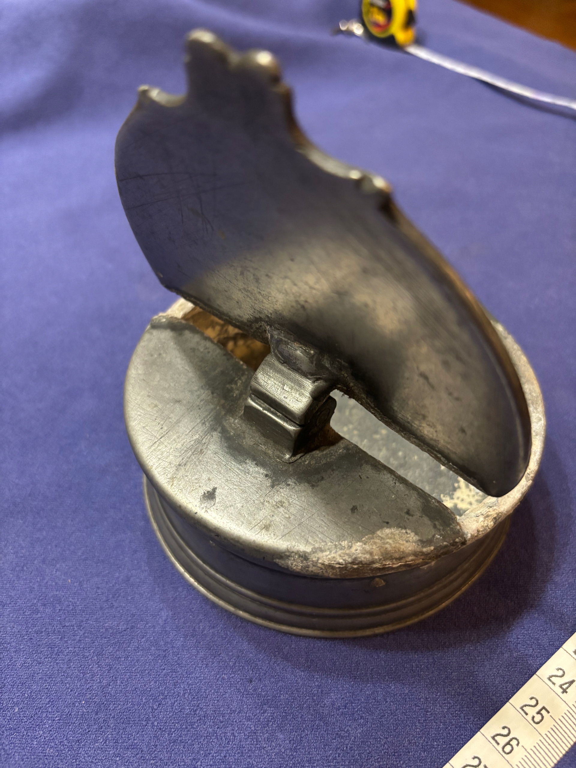 stary pojemnik z cyny, około XIX w. sprawna zamykana klapka, chyba kałamarz