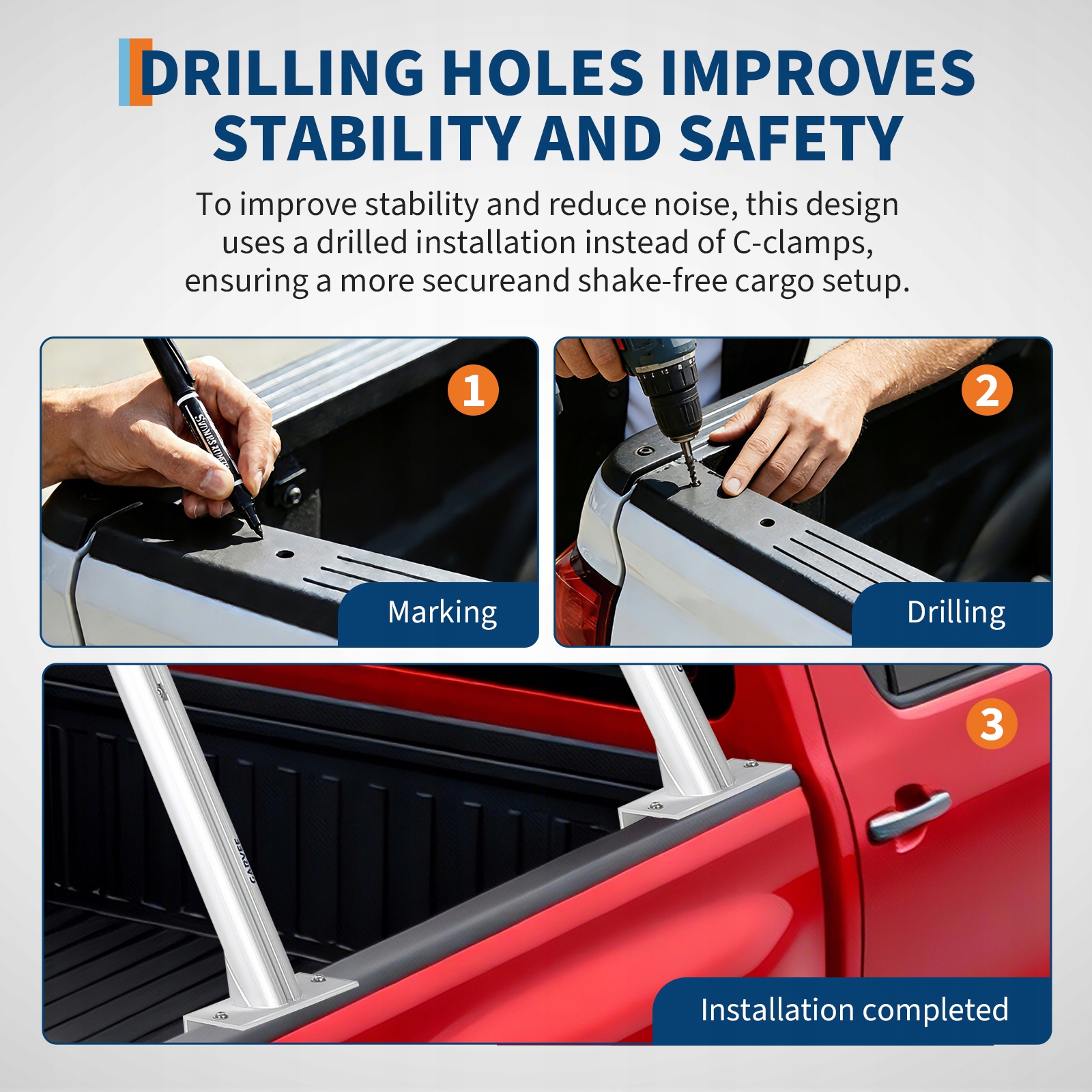 Łatwa instalacja za pomocą całego sprzętu w zestawie; maksymalizuje zdolność przewozową łóżka ciężarówki, idealna dla wykonawców, konstruktorów i entuzjastów outdooru.