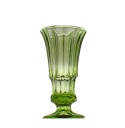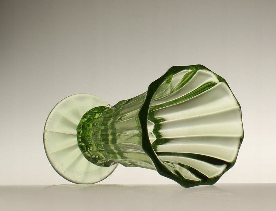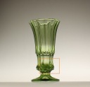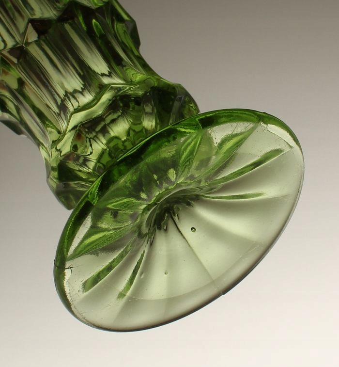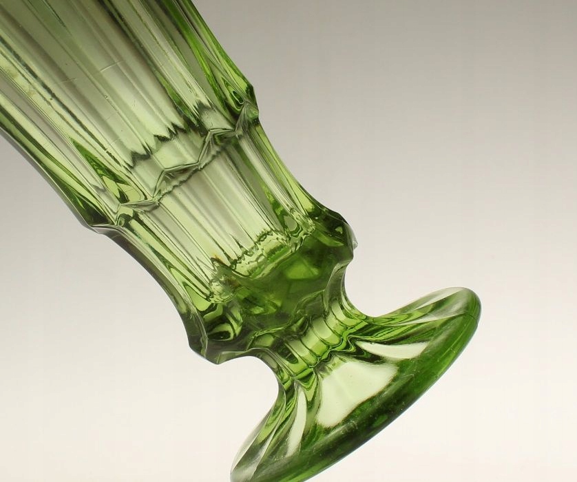Wazon z zielonego szkła prasowanego. Wykonany w stylistyce art deco.