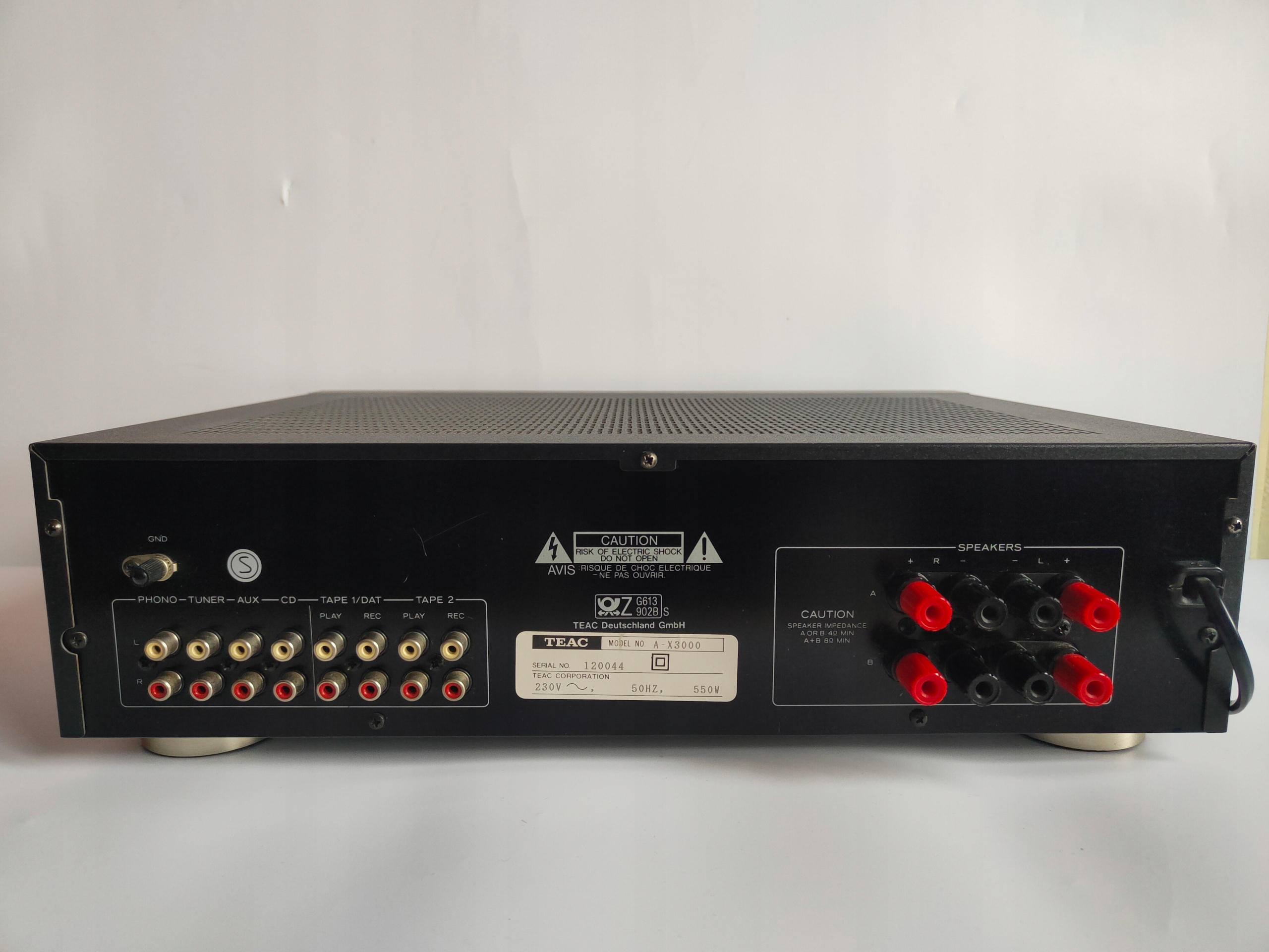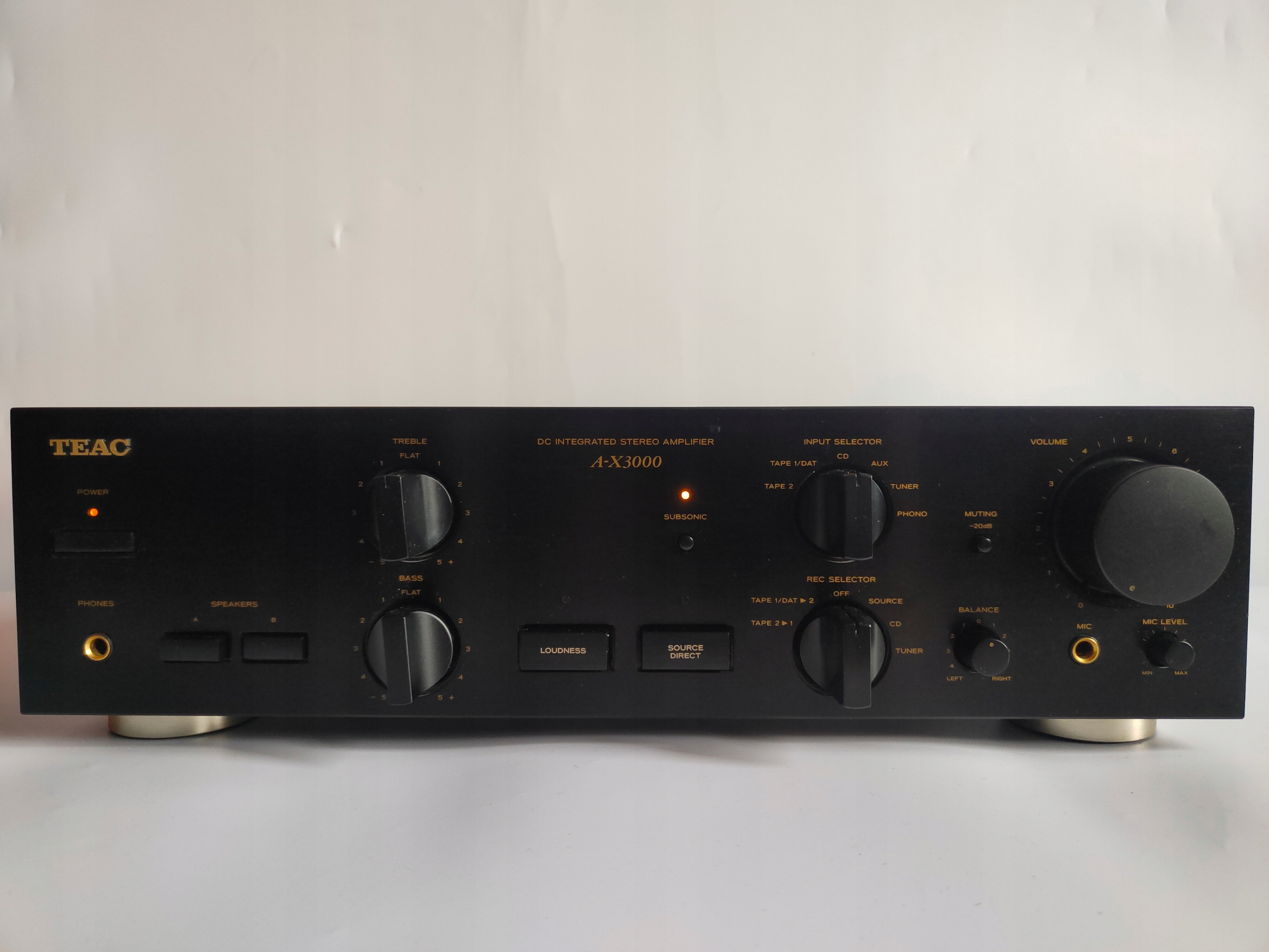 Używany, w pełni sprawny, wzmacniacz stereo TEAC A-X3000. Normalne ślady używania.
