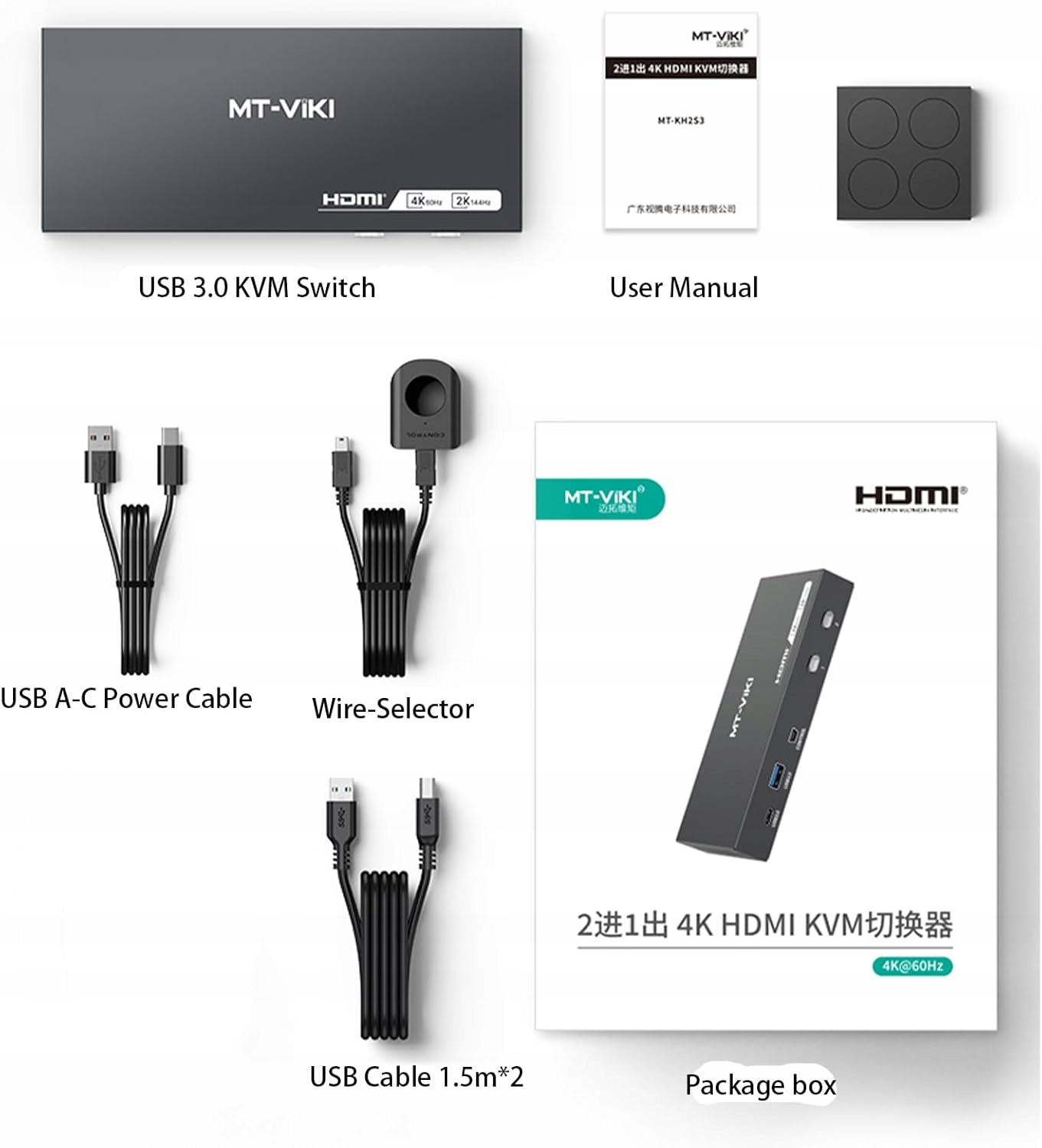 Rozdzielczość 4K i HDCP 2.2: Ten 2-portowy przełącznik KVM HDMI 2.0 obsługuje rozdzielczość do 4K przy 60 Hz i jest wstecznie kompatybilny z 4K przy 30 Hz, 2K przy 144 Hz oraz 1080p przy 240 Hz.