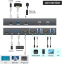 Ten przełącznik KVM USB 3.0 z wyjściem HDMI umożliwia sterowanie dwoma komputerami, pozwalając im współdzielić jeden monitor wraz z klawiaturą, myszą i dwoma urządzeniami USB 3.0.
