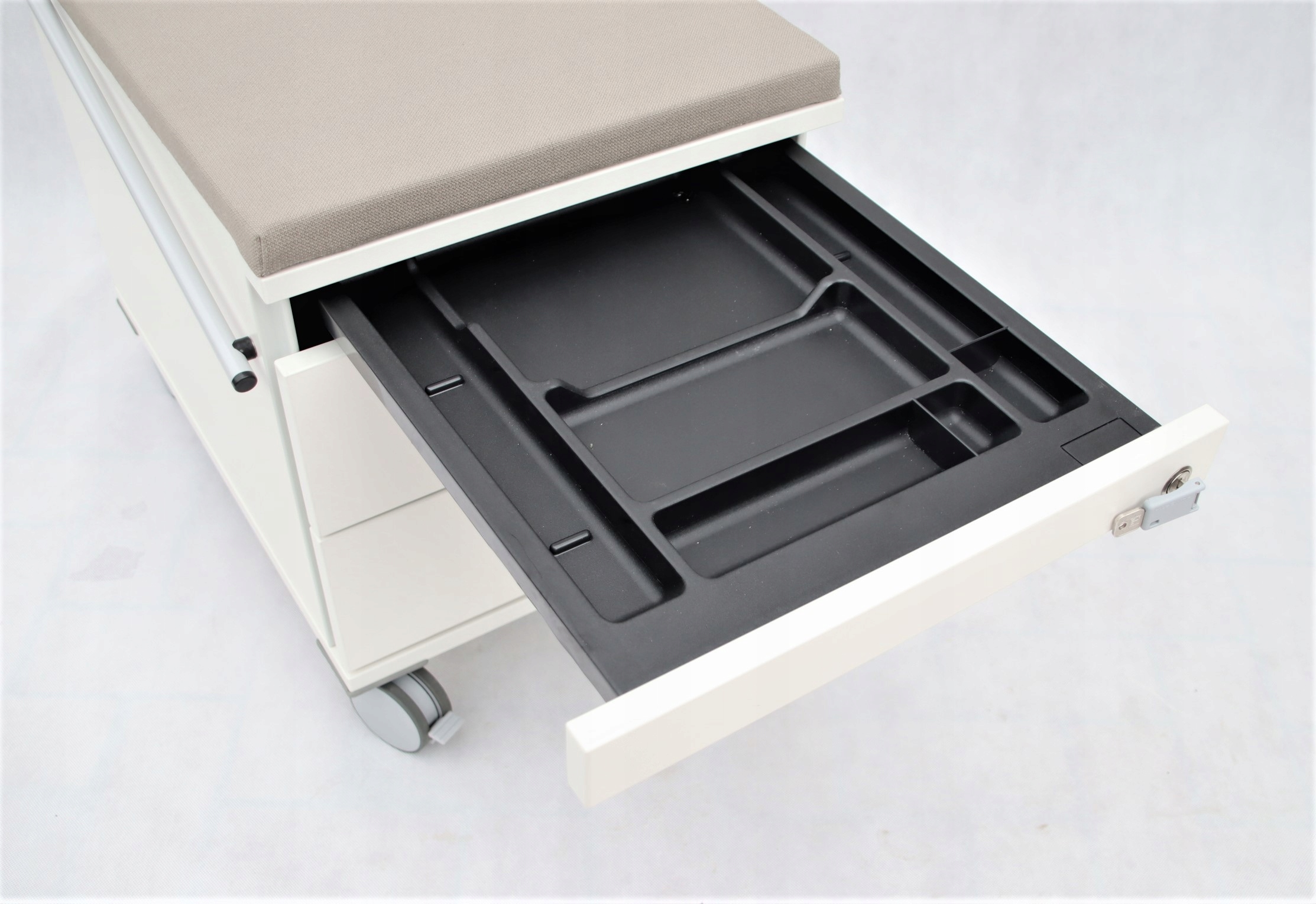 Kontenerek pod biurko marki Haworth wykonany z wysokogatunkowych materiałów. Dzięki czemu sprawdza się nie tylko do użytku domowego, ale również mocnej eksploatacji w przestrzeni biurowej. Organizer posiada 3 szuflady, które pomogą Ci utrzymać porządek w biurowych drobiazgach. Dodatkowo wyposażony w uchwyt umożliwiający wygodne przemieszczanie. Na spodzie kontenerka znajdują się duże kółka umożliwiające swobodne przestawianie i ustawienie w przestrzeni pod biurkiem z możliwością blokady.