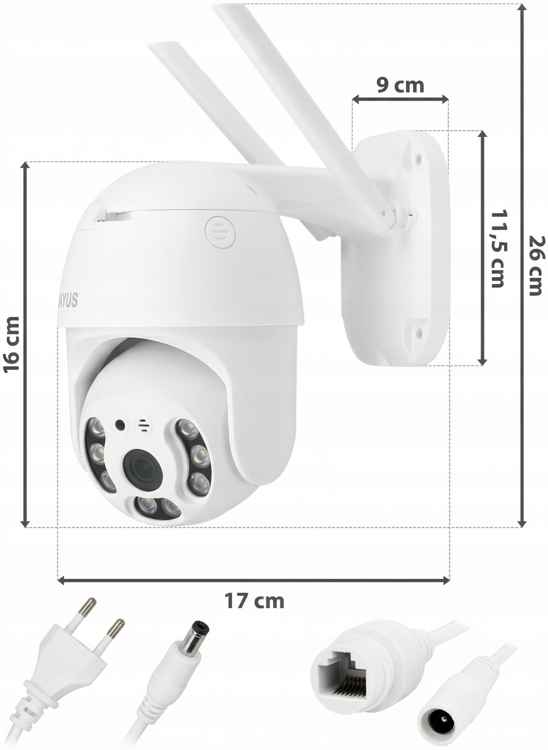 Kamera może działać bezprzewodowo poprzez sieć Wi-Fi lub przewodowo, podpięta do routera przewodem LAN.