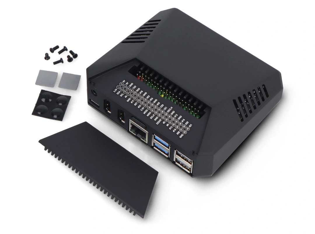 Obudowa posiada wentylator i radiatory oraz oferuje łatwy dostęp do pinów GPIO.