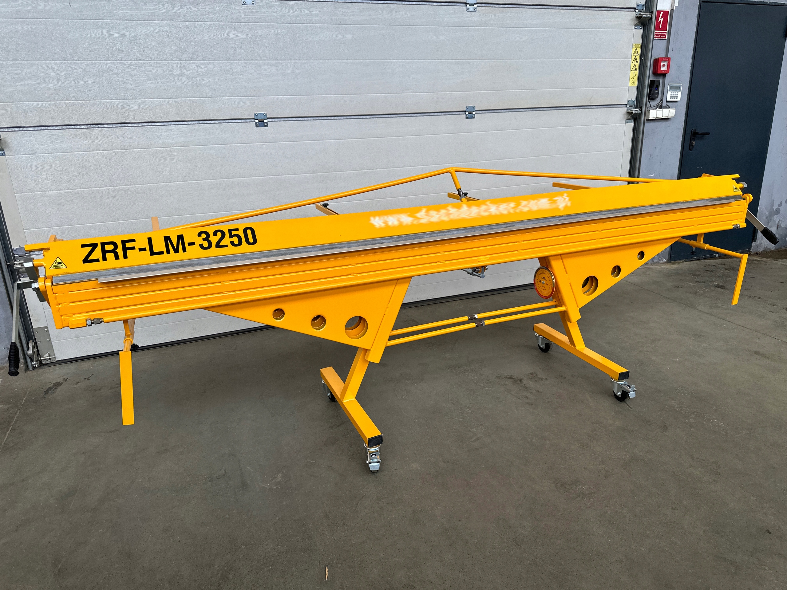 Предметом аукциона является гибочный станок ZRF-LM-3250 мм. Ручной гибочный станок предназначен для ручного резка и гибка листового металла с соблюдением параметров, указанных производителем. Изготовлен из высшего качественная сталь, покрытая порошковым покрытием. Оборудование и мелкие детали защищены от коррозия цинком. Гибочный станок сконструирован таким образом, чтобы можно было корректировать отдельные элементов. Эта конструкция позволила получить очень высокую жесткость гибочного станка. Гибочная машина имеет также несколько регулировки механических компонентов, таких как: угол наклона прижимной балки, сила прижимной балки и установка симметричности положения балки относительно нижней балки. Нож диск во время резки листового металла может оставаться в направляющих на краю гибочного станка без необходимости его отложения. Все элементы конструкции гибочного станка отрегулированы, и нет необходимости в них регулирование.