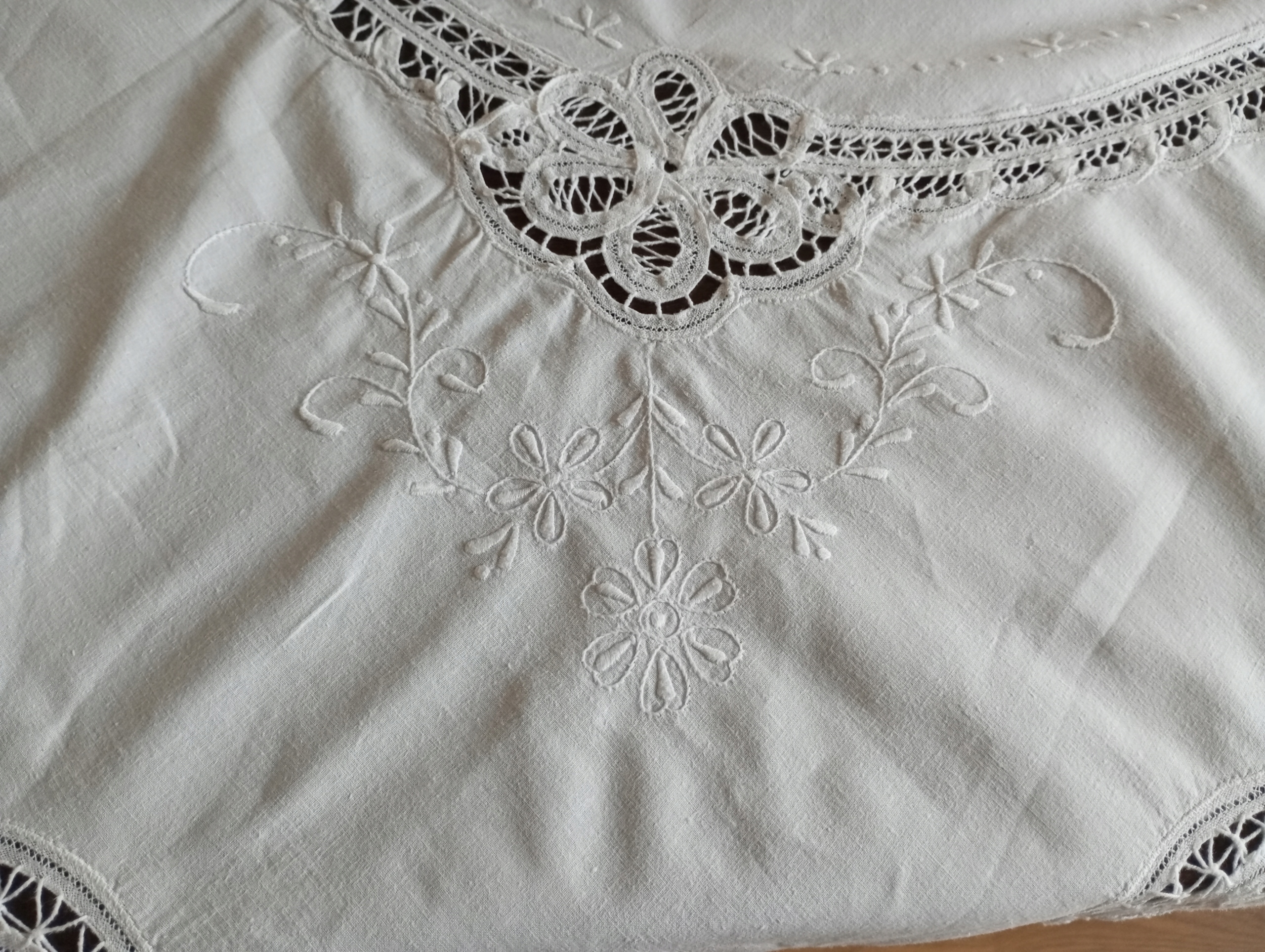 OBRUS BAWEŁNIANY HAFTOWANY ZE ZDJĘCIA O WYMIARACH 164 / 162 cm. PIĘKNE HAFTY WIDOCZNE NA ZDJĘCIACH. WIDOCZNE HAFTY TASIEMKOWY, ZWYKŁY I MEREŻKI. PASUJE NA STÓŁ KWADRATOWY, PROSTOKĄTNY I OKRĄGŁY. STAN OKREŚLAM NA BDB Z PLUSEM - JAK NOWY. DO ODŚWIEŻENIA.