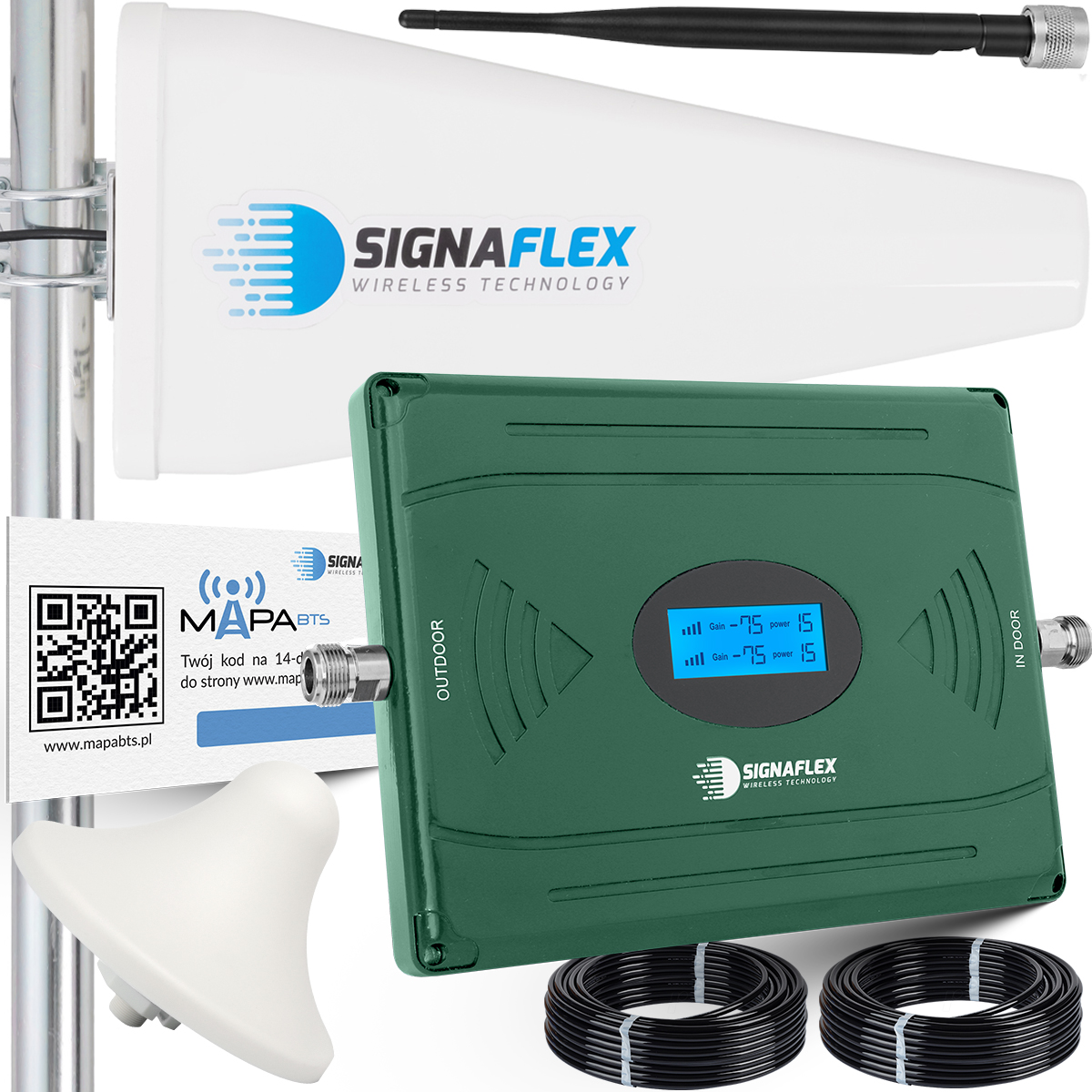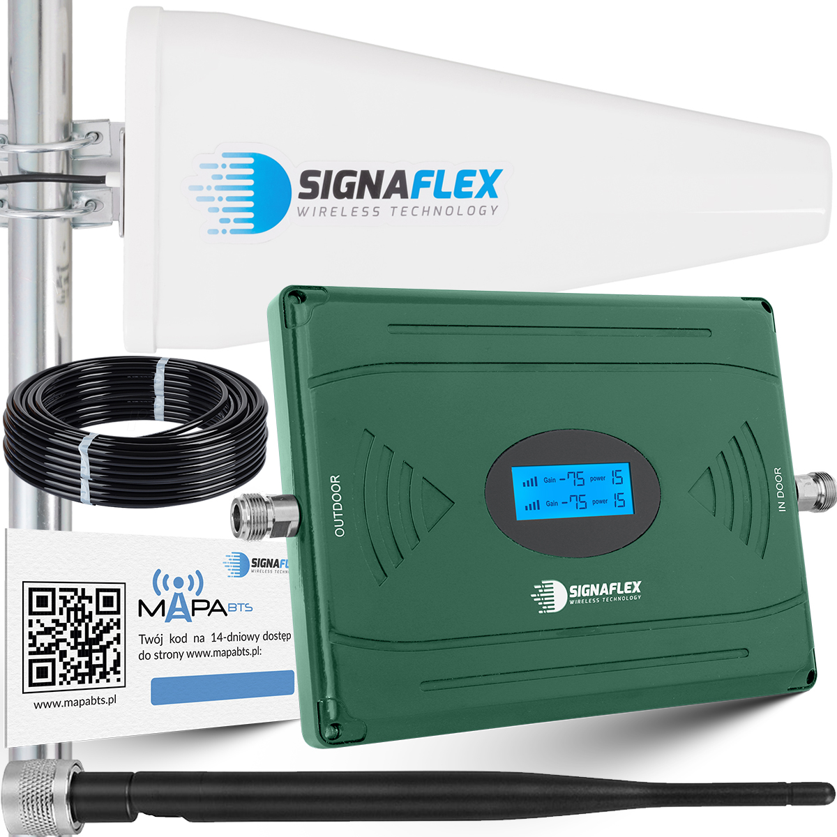 Polecamy Państwu zestawy z anteną 3-zakresową "kierunkowa" o zysku 20dBi obsługującą GSM, UMTS oraz DCS, która zapewnia: