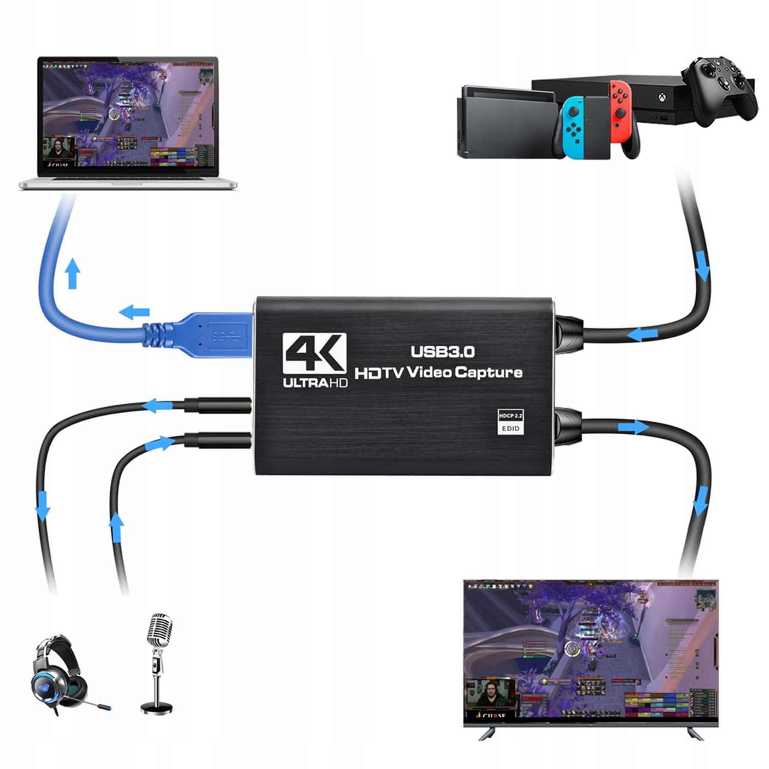 Dzięki technologii USB 3.0 o wysokiej prędkości umożliwia nagrywanie jednego strumienia wideo w jakości HD. Brak opóźnień podczas grania na żywo.