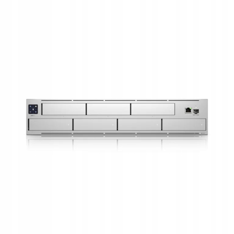 Opis produktuRejestrator sieciowy UNVR-Pro to urządzenie 2U Rackmount NVR od Ubiquiti z fabrycznie zainstalowaną aplikacją UniFi Protect do nagrywania kamer UVC od Ubiquiti. NVR ma moc do nagrywania do 60 kamer w rozdzielczości Full HD lub 20 kamer w rozdzielczości 4K i zachowania nagrania przez 60 dni. NVR obsługuje do 7 pozycji dyskowych dla SSD/HDD o maksymalnej pojemności 16TB/dysk, obsługuje RAID 1/5/10 dla większej niezawodności przechowywania danych, posiada 3-calowy ekran dotykowy, który z późniejszą wersją będzie umożliwiał również podgląd wideo, port Gigabit LAN, port SFP+ z obsługą prędkości 1G/10Gbps i nadmiarowe zasilanie za pomocą UniFi SmartPower (USP-RPS). Do NVR można uzyskać dostęp klasycznie przez przeglądarkę z pulpitu,laptopa, ale także tabletu lub telefonu komórkowego dzięki aplikacji mobilnej na iOS lub Android.Kluczowe właściwości(7) gniazdo na dysk twardy o rozmiarze 2,5/3,5 -maks. 16TB na każdy dysk HDD(1) 10G SFP+ port(1) Gigabit Ethernet -RJ45 portRackmount design,wysokość 2U3" ekran dotykowy z możliwością podglądu wideo (będzie dostępny z aktualizacją UniFi OS Console)Zainstalowane fabrycznie oprogramowanie UniFi ProtectObsługa RAID 1,RAID 5 i RAID 10Redundantne zasilanie - 230V i zasilanie awaryjne przez UniFi SmartPower (USP-RPS)Zarządzanie za pomocą aplikacji UniFi Protect:dla iOS od wersji 1.4.3 lub Android od wersji 1.3.9. Zawartość opakowaniaUrządzenie do zasilaniaŚruby do mocowania w stojakuuchwyty do 19-calowego stojakaParametry techniczneObrazMax. zużycie energii [W]: 160Zasilanie przez złącze/skrzynkę zaciskową:230V ACCharakterystyka fizycznaWykonanie: RackmountLiczba pozycji U: 2Temperatura pracy [°C]:-5 do 40Waga [g]: 9200Szerokość [mm]: 442Wysokość [mm]: 87Głębokość [mm]: 325HardwareLiczba obsługiwanych kamer IP: 60Liczba obsługiwanych HDD: 7Obsługiwana pojemność HDD [TB]: 16SoftringPoziom RAID:1 - mi