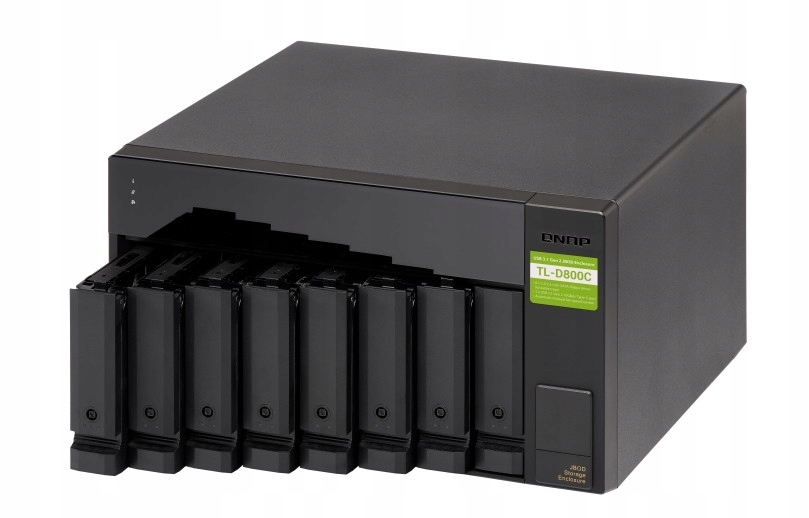 TL-D800C oferuje osiem 3,5-calowych pozycji dla dysków SATA 6 Gb/s z połączeniem USB 3.2 Gen 2 (10 Gb/s) TYPE-C dla szybkiej i płynnej rozbudowy.
