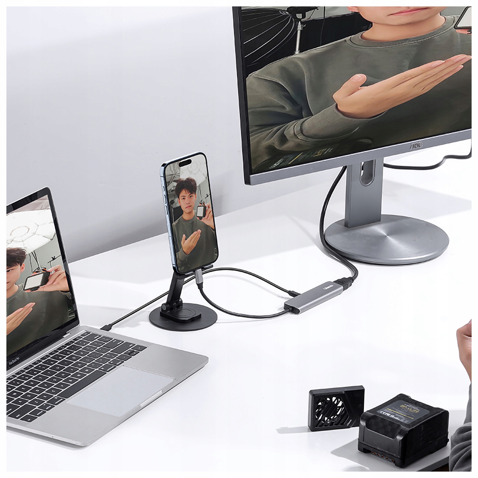 ULANZI C060 obsługuje USB-C, USB 3.0 i HDMI, co pozwala podłączyć laptopa, kamerę czy smartfona w dowolnej konfiguracji.