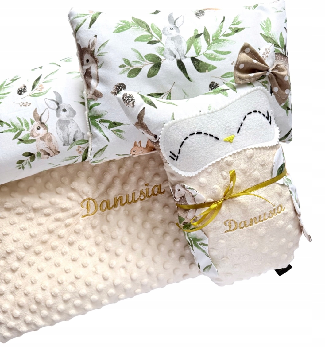 Cena dotyczy zestawu (kocyk do wózka, poduszka oraz sowa).