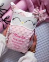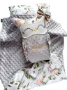Sówka oraz kocyk wykonane z łączonych materiałów MINKY oraz ze 100% bawełny z certyfikowanych materiałów pochodzących wyłącznie od polskich producentów.