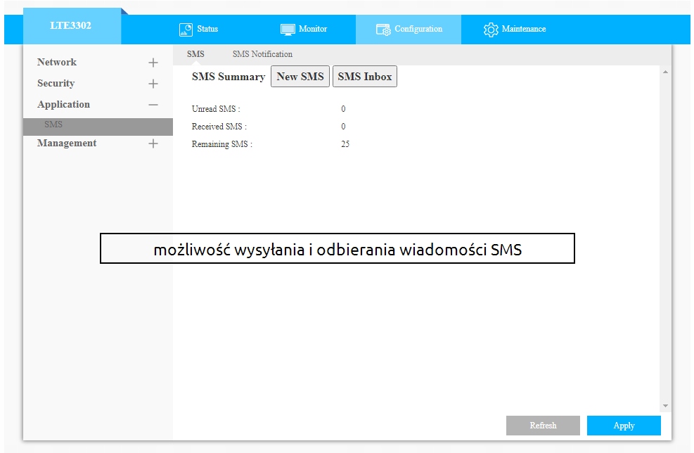 Sieć bezprzewodowa jest fabrycznie zabezpieczona - nikt, kto nie zna hasła nie będzie mógł się z nią połączyć. Router poprzez sieć WiFi jest w stanie obsłużyć do 32 urządzeń.