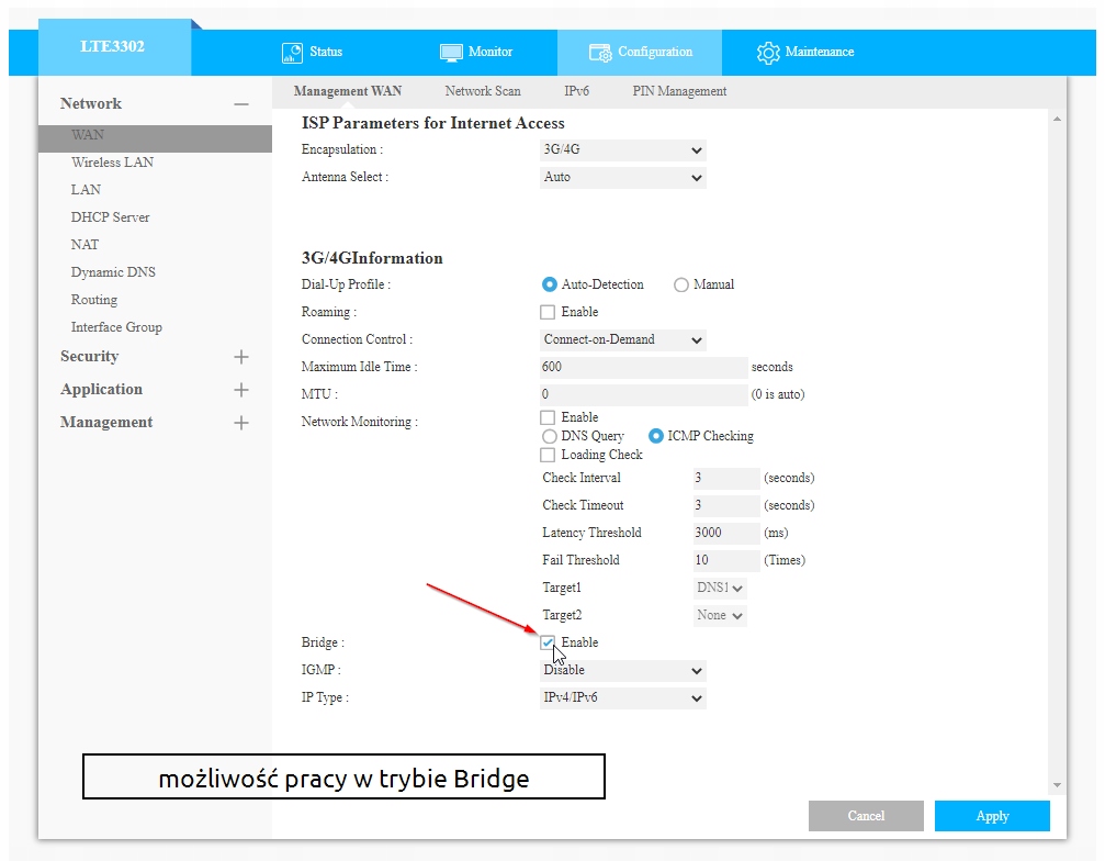 Zaawansowanych użytkowników zainteresuje funkcja Bridge (IP pass-through) oraz szereg innych, które pokazałem na zrzutach ekranu w zdjęciach na aukcji.