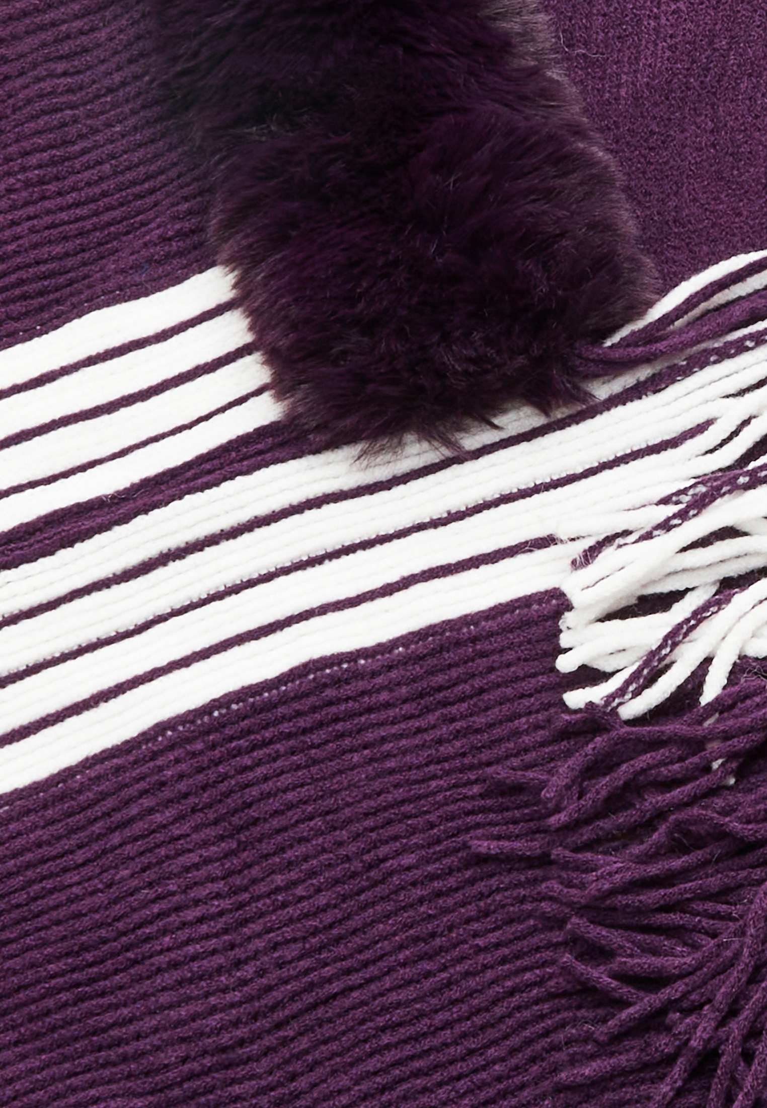 Rozszerz swoją kolekcję odzieży wierzchniej o ten modny, dzianinowy element. Ten krótki top o prążkowanej fakturze i futrzanym kołnierzu emanuje nowoczesnym stylem. Szerokie rękawy o długości ¾ zdobią efektowny wzór w paski przy mankietach, a frędzle u dołu dodają wyjątkowego charakteru. Idealny, aby zapewnić sobie wygodę, a jednocześnie być modnym akcentem – ten otwarty fason z pewnością przyciągnie wzrok, gdziekolwiek się pojawisz.