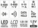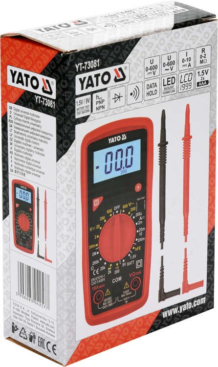 Miernik uniwersalny YT-73081 z ręcznym zakresem dla każdego pomiaru umożliwia wykonanie podstawowych oraz zaawansowanych pomiarów elektrycznych. Dodatkową i przydatną opcją jest test baterii 1,5V i 9V za pomocą którego możemy sprawdzić napięcie badanej baterii pod obciążeniem, pomoże to ocenić jej stan oraz wykluczyć lub potwierdzić konieczność wymiany.