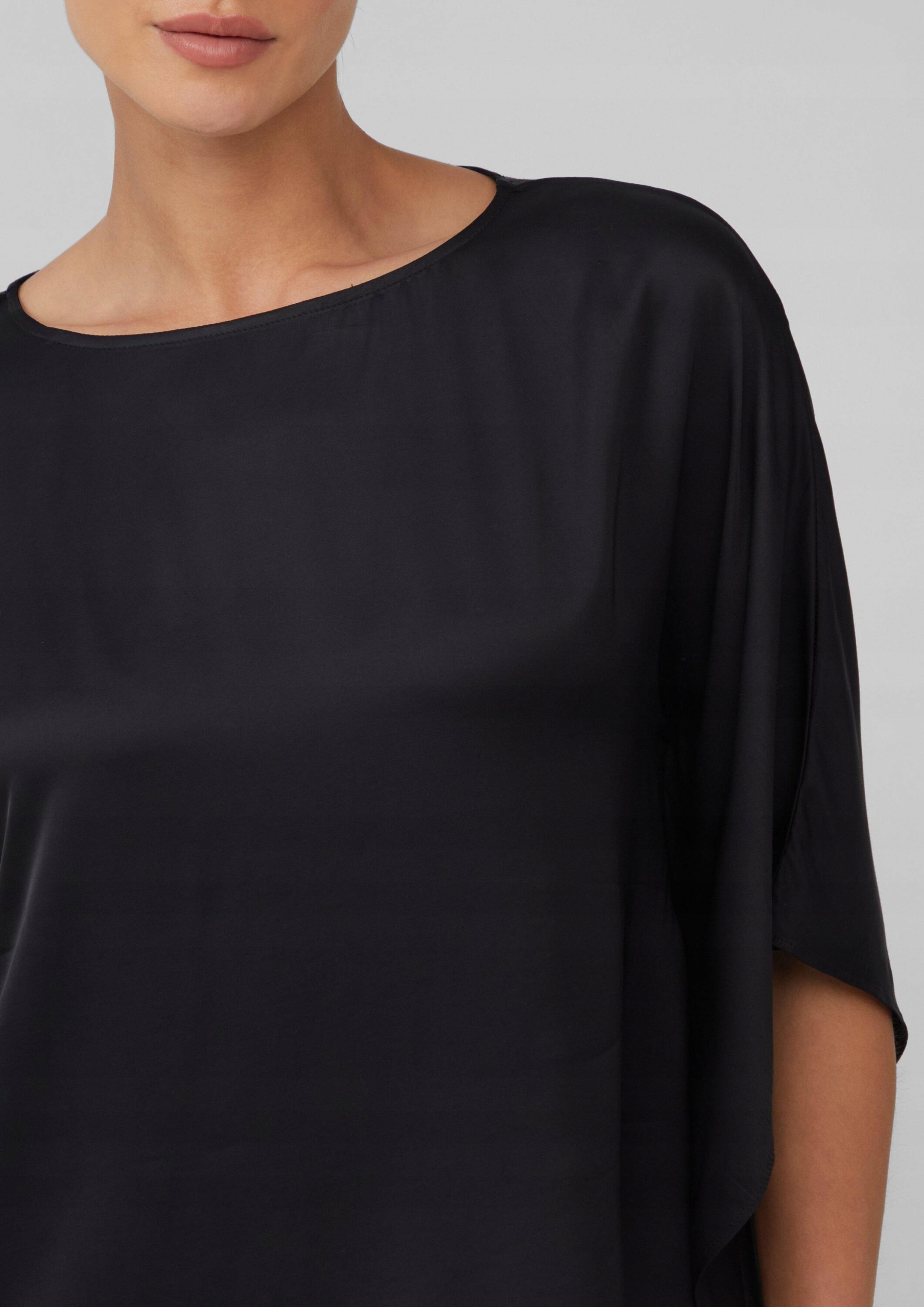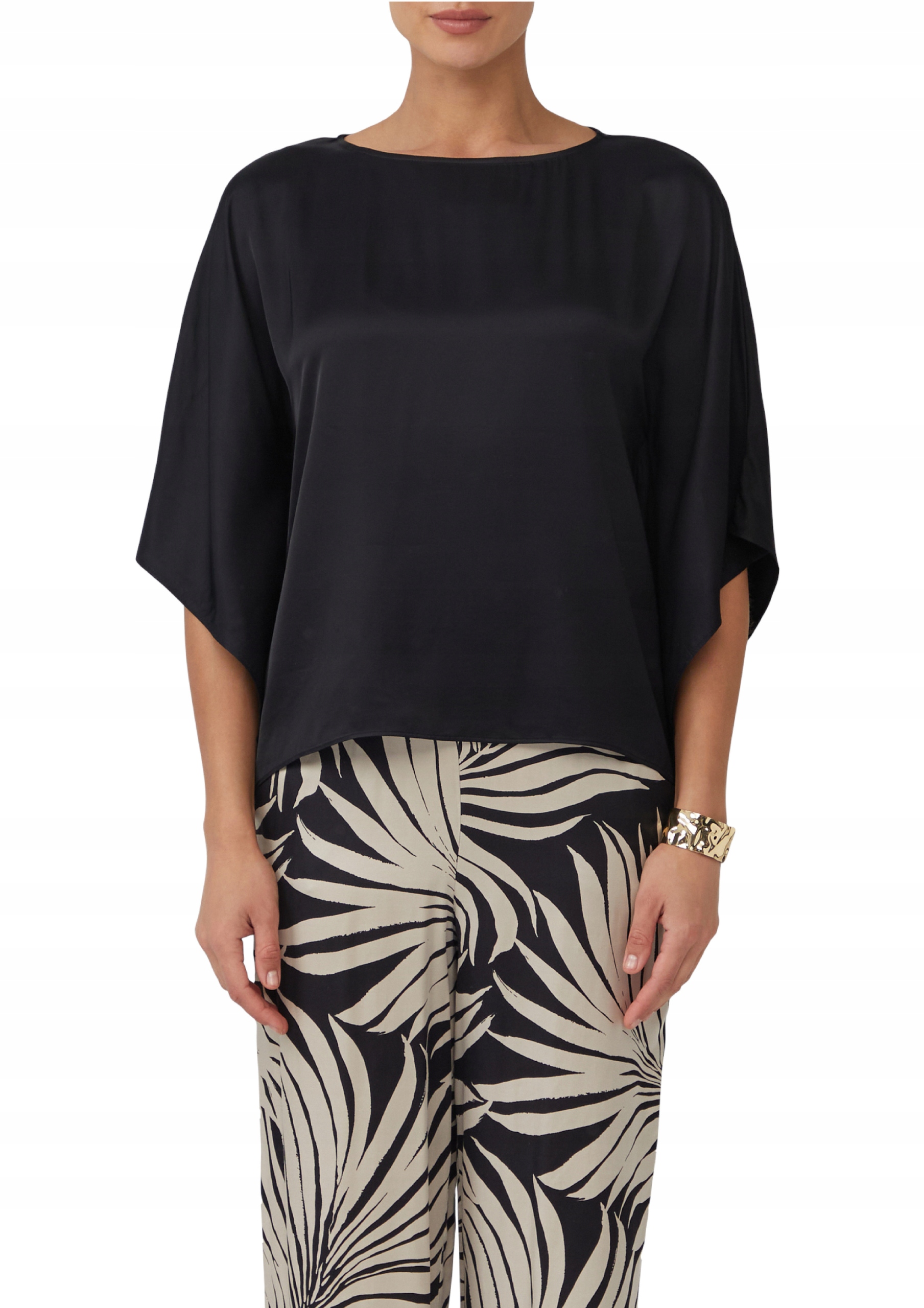 Podnieś swój styl dzięki tej lejącej satynowej bluzce ponczo. Jej nadruk na całej powierzchni i luźny krój emanują niewymuszonym wyrafinowaniem, a dekolt typu U-boat i opadające ramiona tworzą nowoczesną sylwetkę. Uniwersalny do noszenia na co dzień, w biznesie lub na imprezę, ten wiskozowy element płynnie przechodzi z dnia na noc, uosabiając pewność siebie i ponadczasową elegancję.