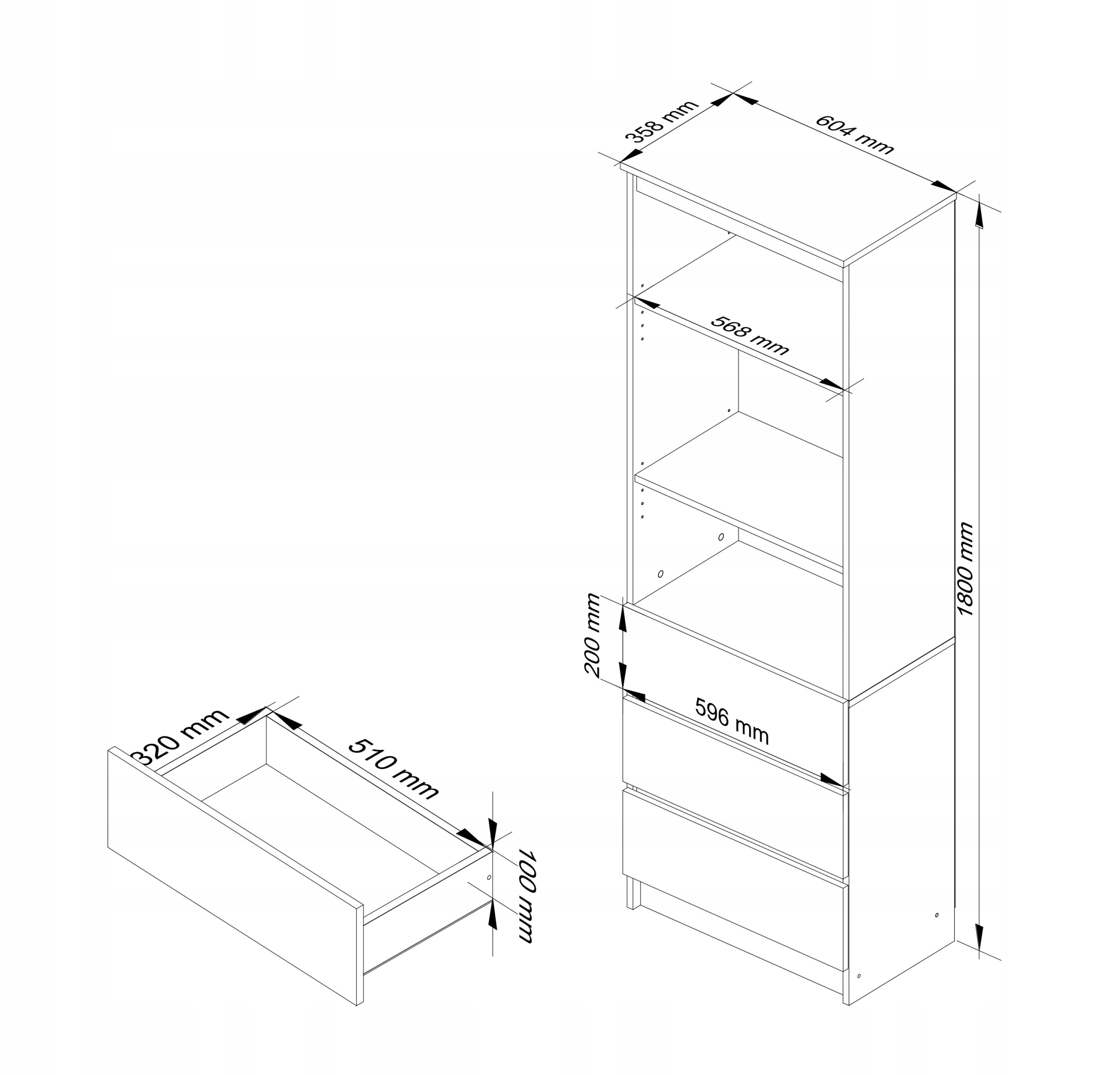 Ширина мебели 60 см