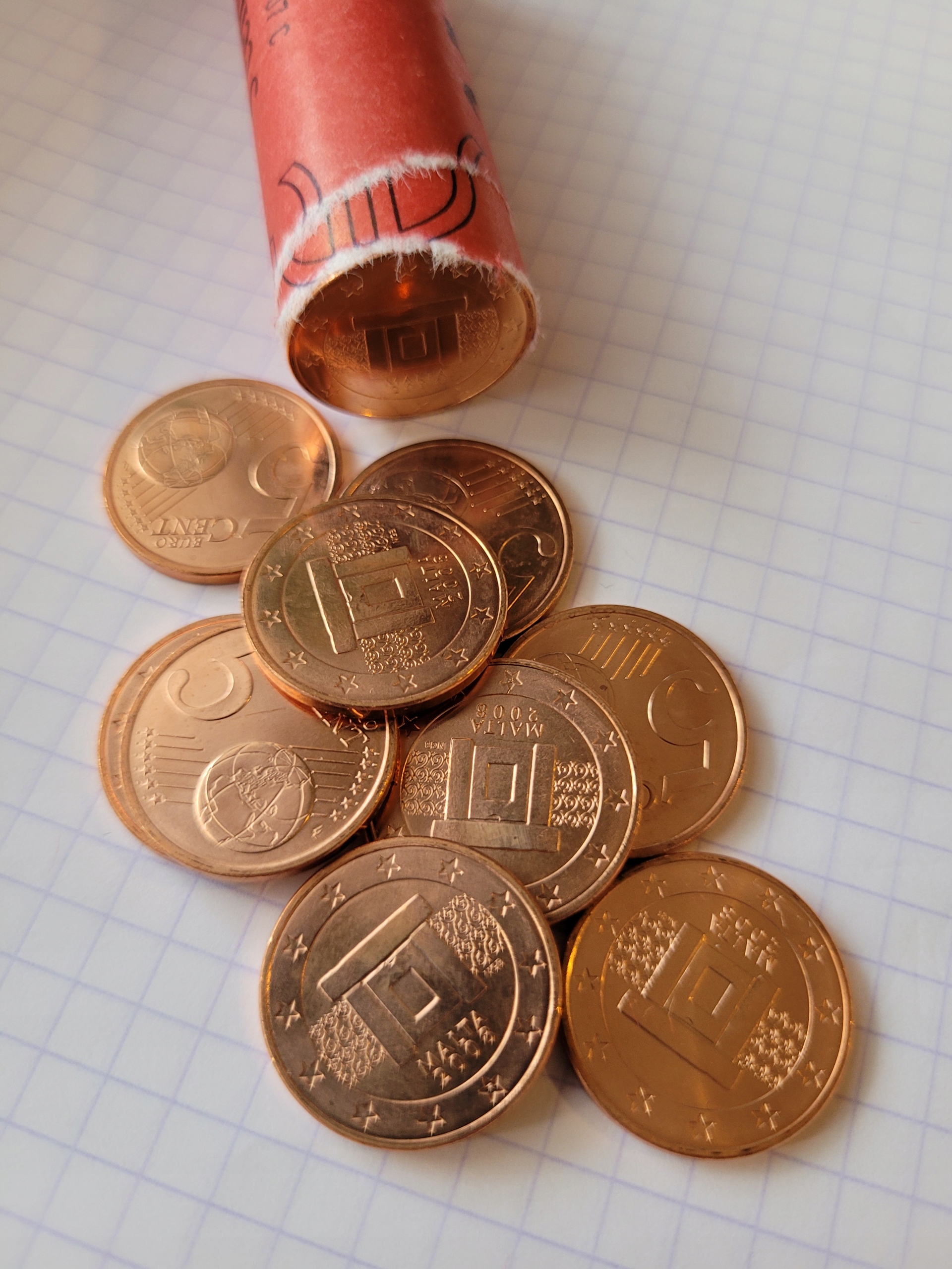 5 euro Cent Malta 2008, Mennicze, prosto z Rolki Bankowej.