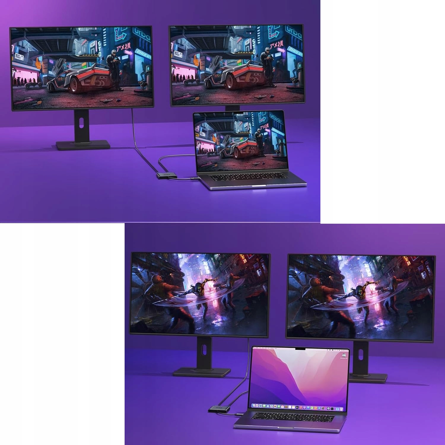 ✅ Podwójne wyjście HDMI – umożliwia podłączenie dwóch monitorów lub telewizorów jednocześnie do jednego gniazda USB-C.