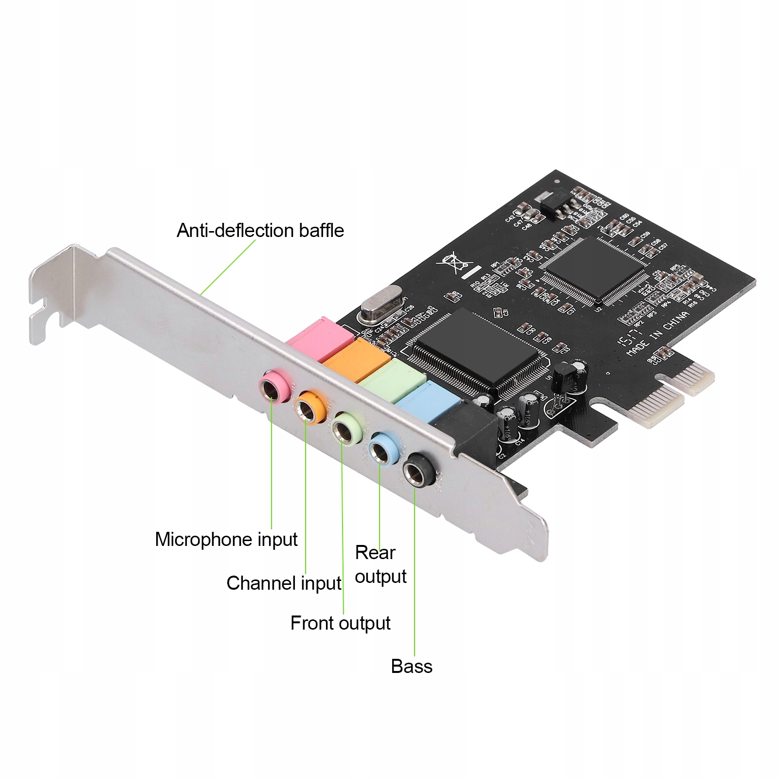 Funkcja:1. Pełnodupleksowa karta dźwiękowa 5.1-kanałowa PCI-Express, współpracująca z wielokanałowym układem dźwiękowym CMI8738.