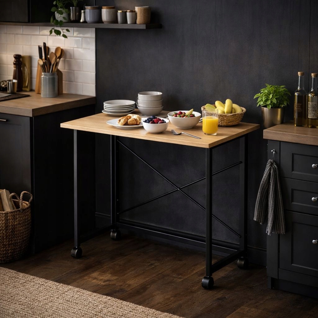 Ten składany stolik na kółkach to idealne rozwiązanie do domu, biura i małych przestrzeni.