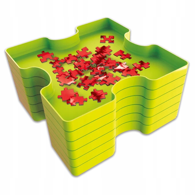 Łatwe sortowanie – posegreguj elementy puzzli według ich koloru. Sprawna organizacja – połącz pojemniki by zaoszczędzić miejsce i zorganizować przestrzeń do układania. Wygodne przechowywanie i przenoszenie – dopasowane pudełko umożliwi łatwe przechowywanie i przenoszenie pojemników z posortowanymi puzzlami. Idealne wykończenie – matowa powierzchnia antyrefl eksyjna wewnątrz każdego pojemnika niweluje odbicie światła. Wymiary tacki: 19x19 cm.