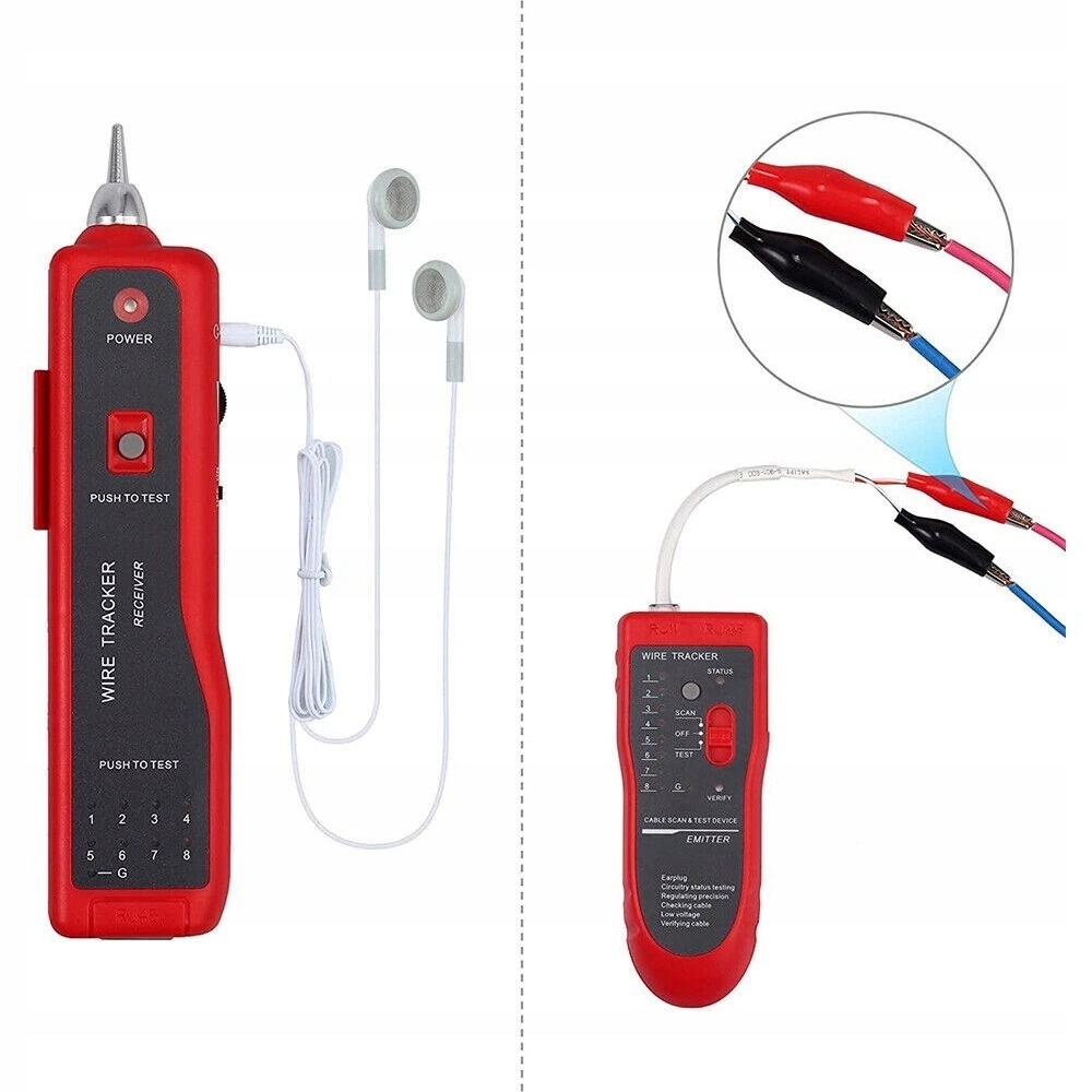 ✔️Ten lokalizator kabli z łatwością identyfikuje i śledzi linie oraz testuje kable telefoniczne i sieciowe (LAN) (RJ9, RJ10, RJ11, RJ12, RJ14 itp.); zasięg wykrywania: do 3 kilometrów.