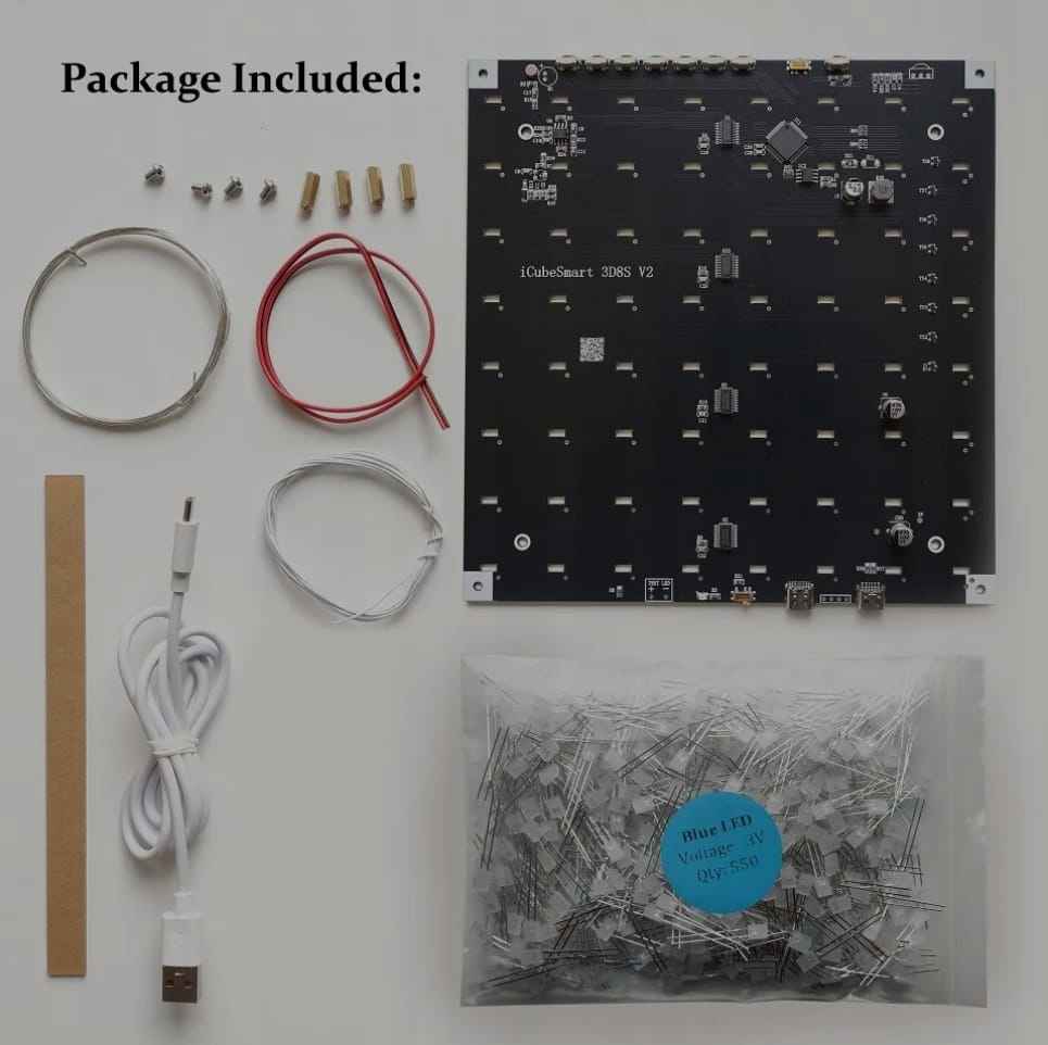[Easy Kit] Płyta główna PCB w tym zestawie jest gotowa do lutowania i przetestowania. Lutowania wymagają jedynie diody LED, więc wymagana jest podstawowa znajomość elektroniki i umiejętności lutowania. Przed zakupem, pod poniższym linkiem, znajdziesz instrukcję instalacji i użytkowania, jak przenieść program do kostki świetlnej, a także oprogramowanie do animacji 3D i filmy instruktażowe dotyczące montażu.