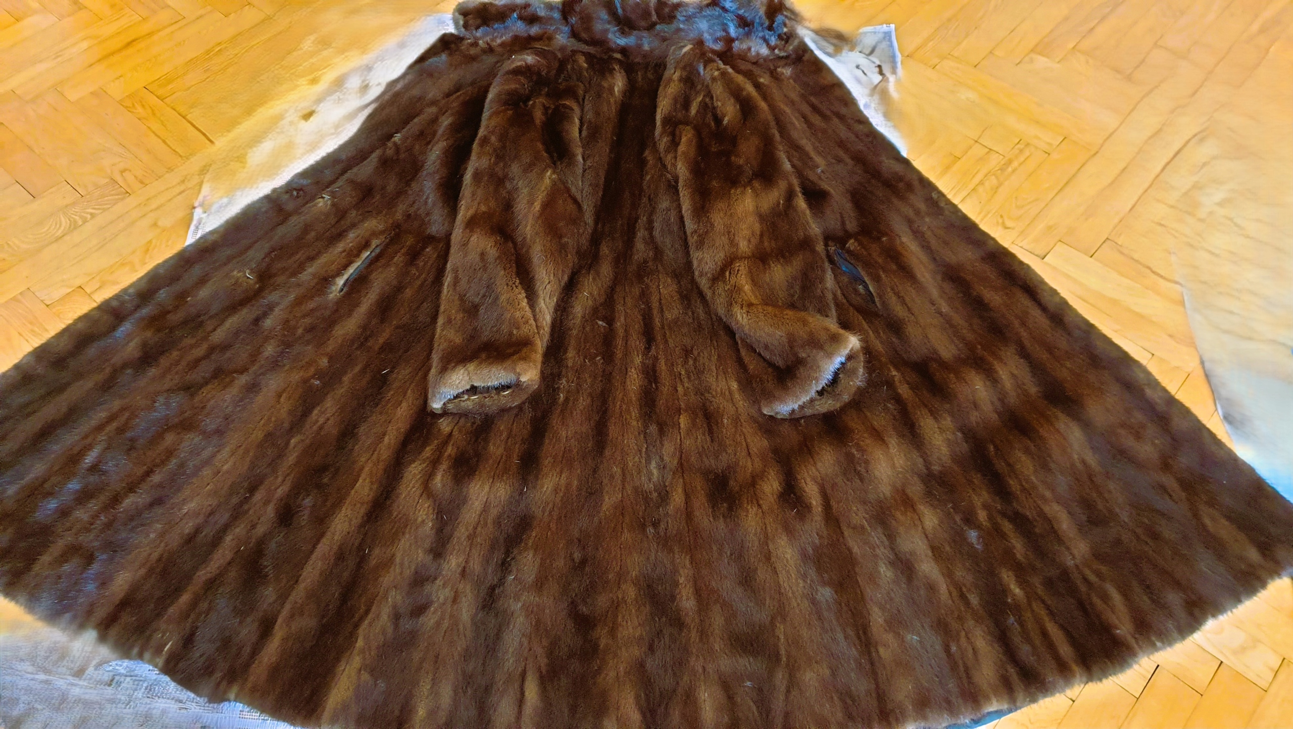 SAGA MINK -FOTRO Z CAŁEJ MIĘKKIEJ JEDWABISTEJ NORKI , PRZEPIĘKNY KOLOR CZEKOLADOWY , CIEKAWY FASON LEKKO POSZERZANA, KOŁNIERZ SKÓRY LŚNIĄCE, BEZ PRZYKRYCH ZAPACHÓW , STAN BARDZO DOBRY POLECAM OKAZJA KOSZT W SALONE PONAD 6000ZŁ
