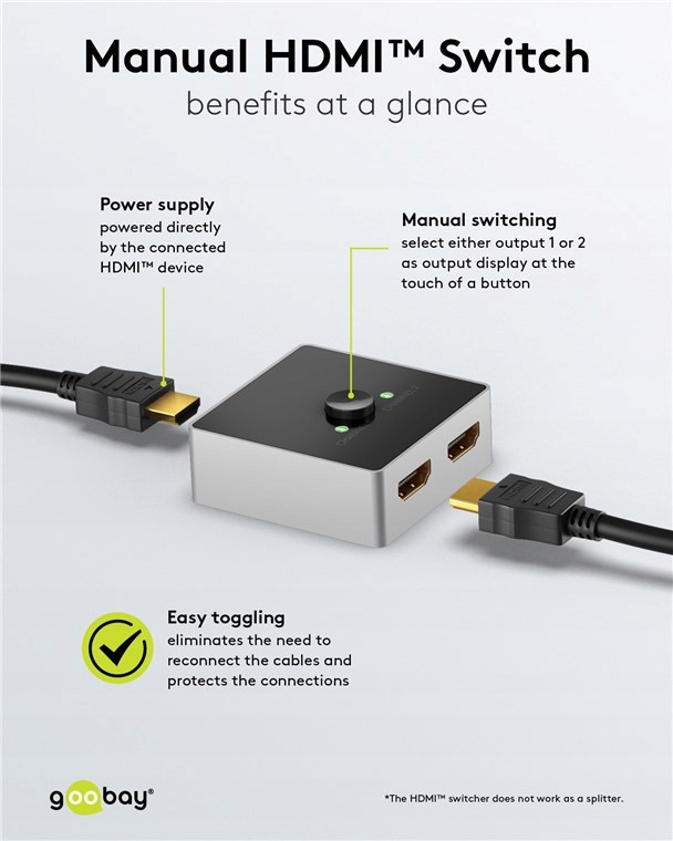 do przełączania między urządzeniami 2x HDMI™ podłączonymi do 1x wyświetlacza HDMI™