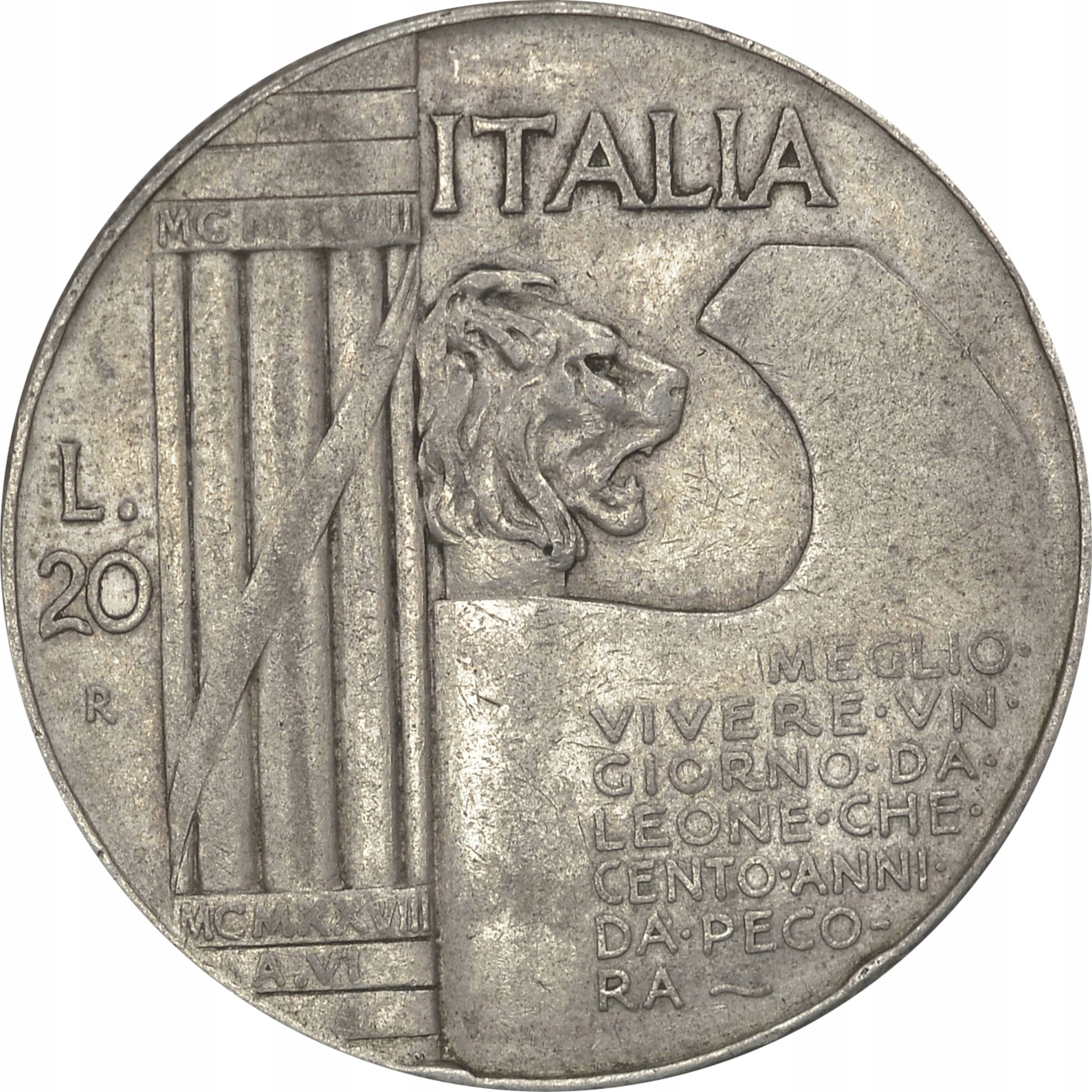 7.hyr.WŁOCHY, 20 LIRÓW 1928 10 R.ZAKOŃCZENIA WOJNY