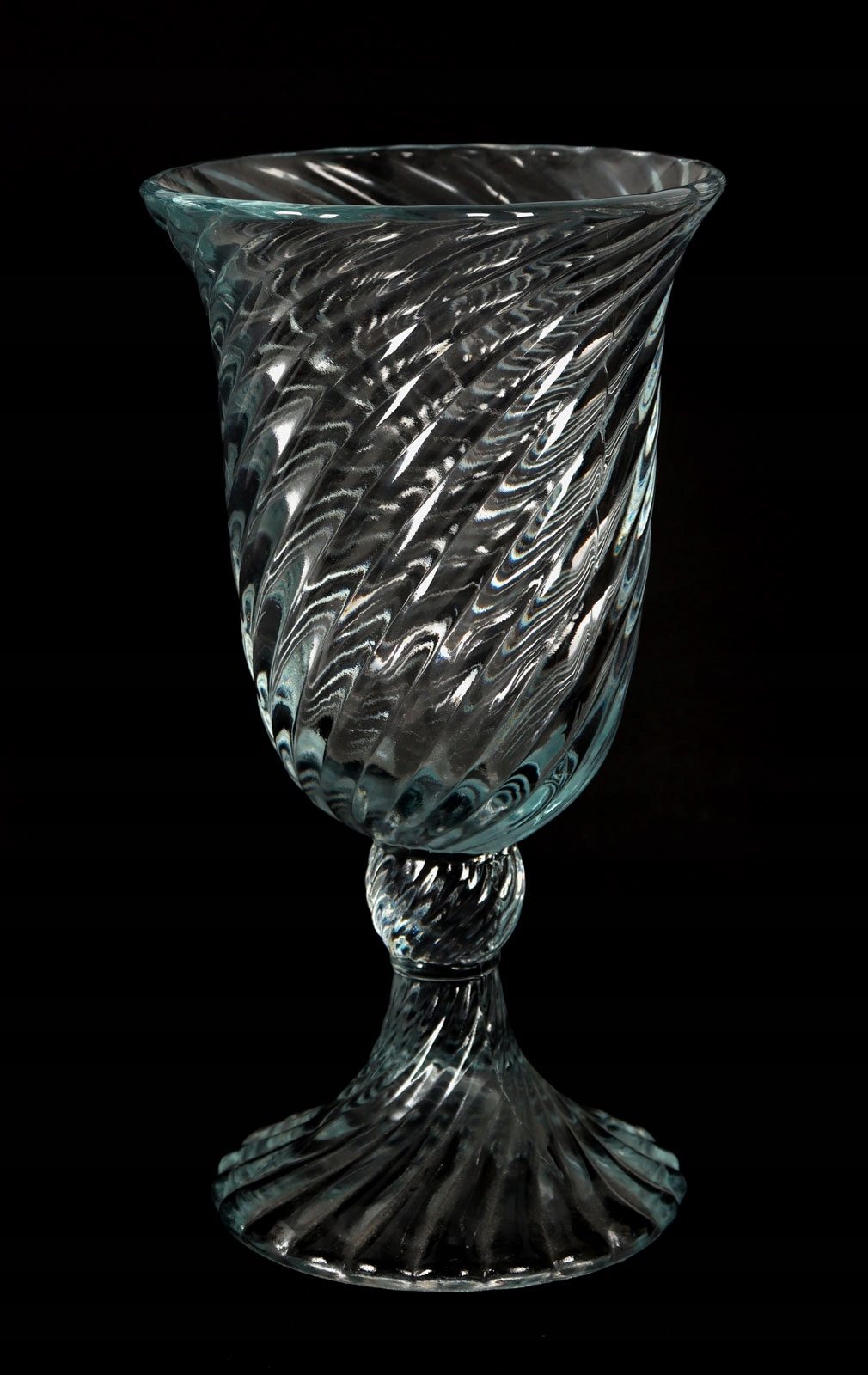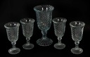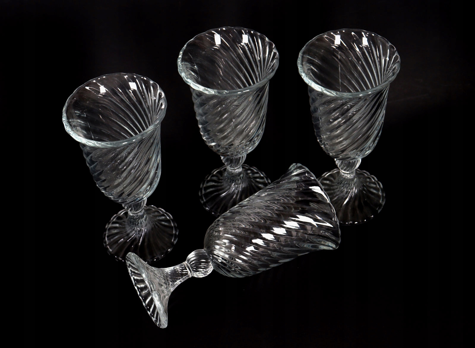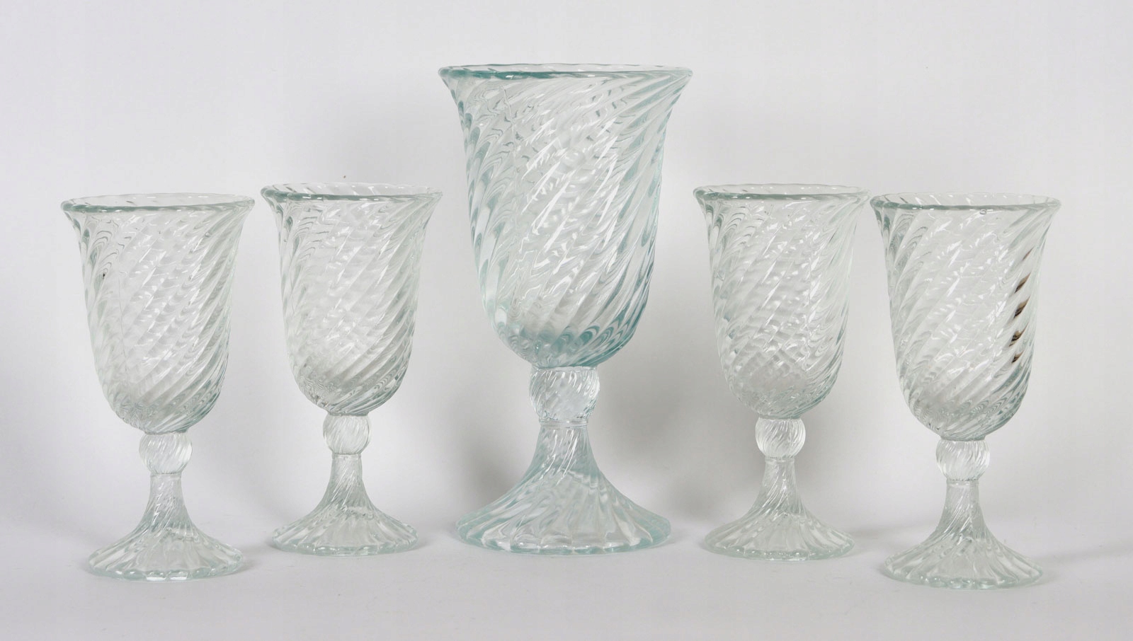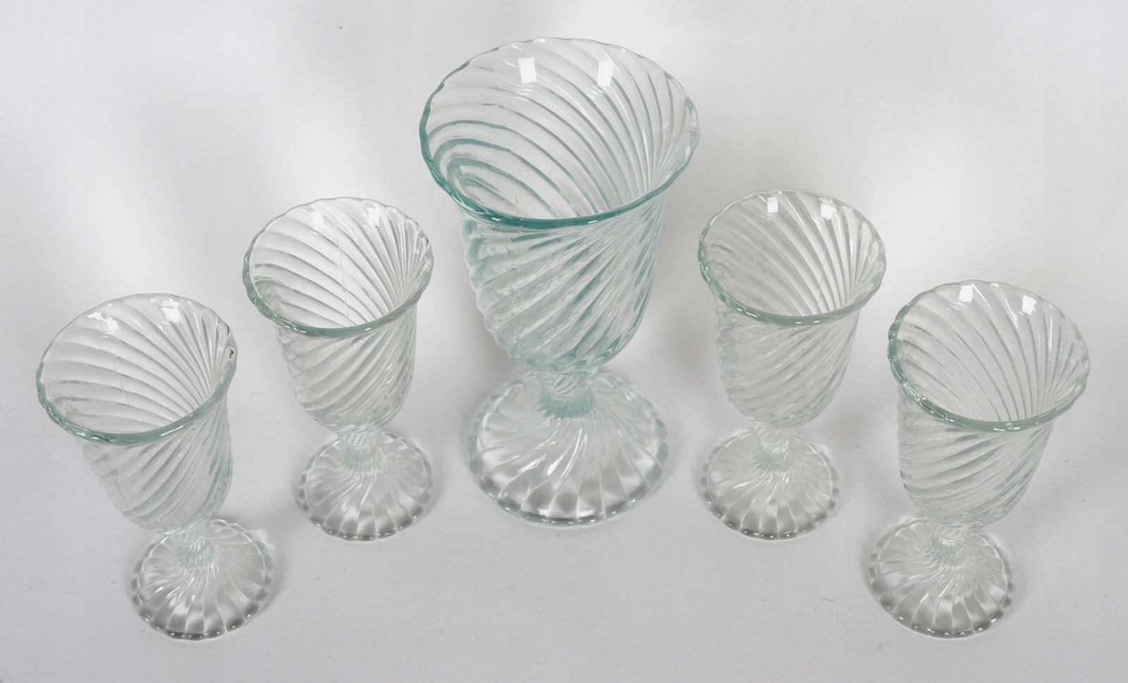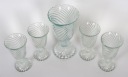 Wazon i 4 pucharki wykonane ze szkła sodowego prasowanego. Model SPIRELLI, projekt Ryszard Serwicki.