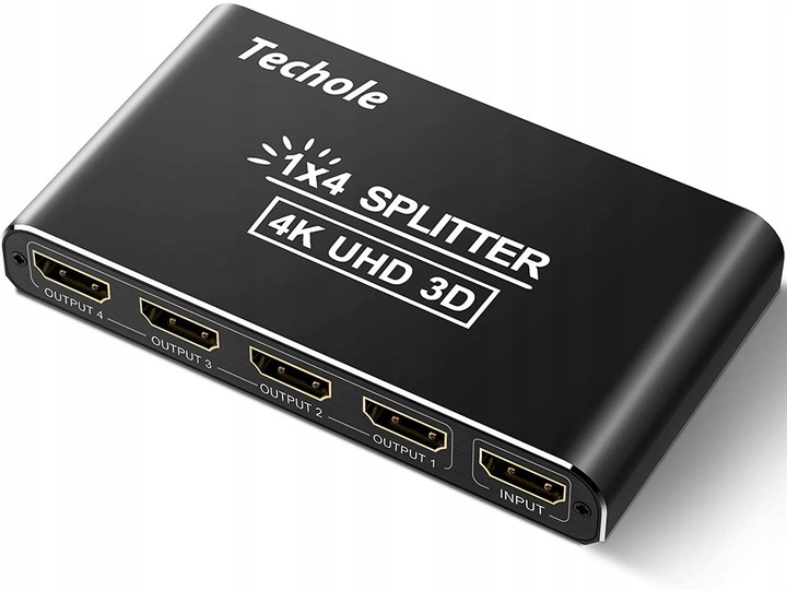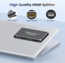 Obsługa wideo i dźwięku 4K 3D HDCP: Ciesz się obrazem w rozdzielczości Ultra HD z obsługą 4K@30Hz, 2160p, 1440p, 1080p i 3D. Ten rozdzielacz HDMI 4K zapewnia krystalicznie czysty obraz na wszystkich podłączonych ekranach. Pełna zgodność z HDCP 1.4 – idealna do platform streamingowych, odtwarzaczy Blu-ray i gier o wysokiej rozdzielczości. Obsługiwane formaty audio: DTS-HD/Dobly-true HD/LPCM/DTS7.1/Dobly-AC3/DSD.
