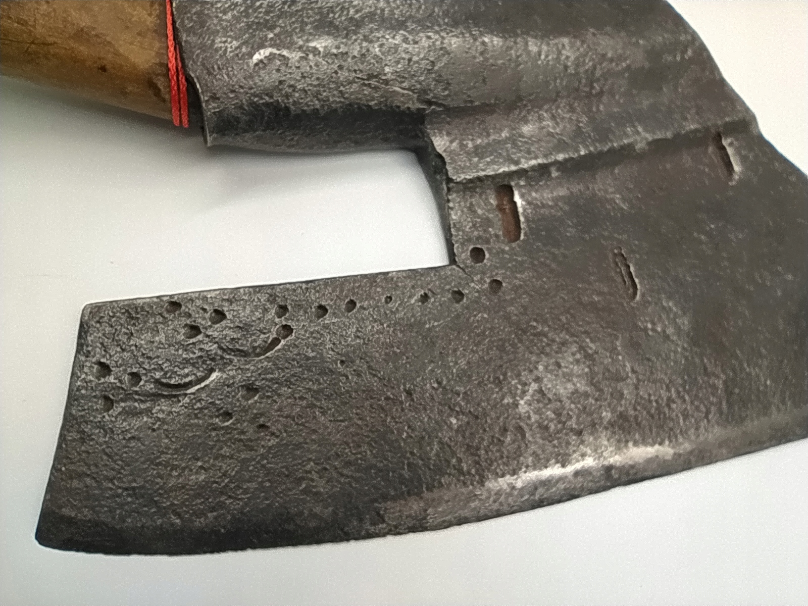 Przedmiotem aukcji jest stary, oryginalny topór ciesielski, kuty, wym. ostrza 31,5 x 17 cm., stan widoczny na zdjęciach