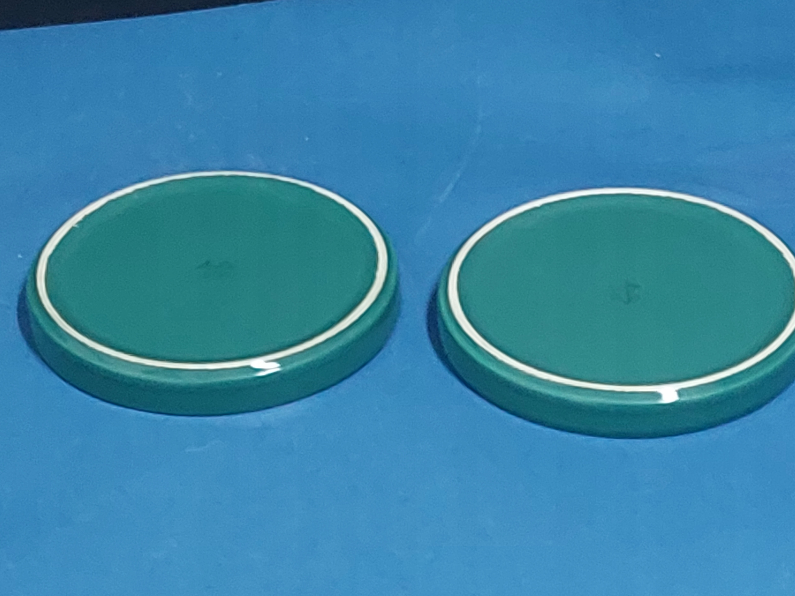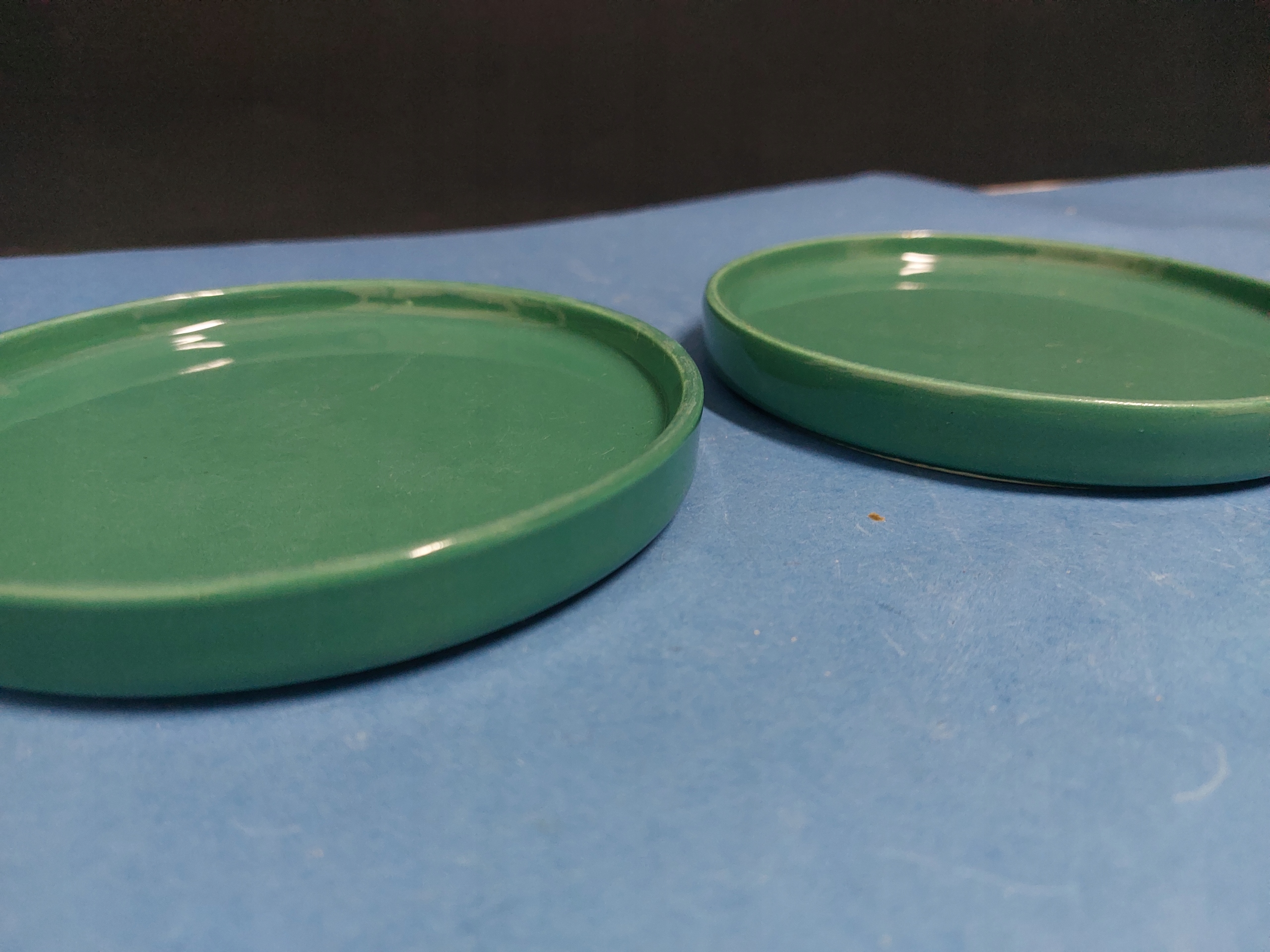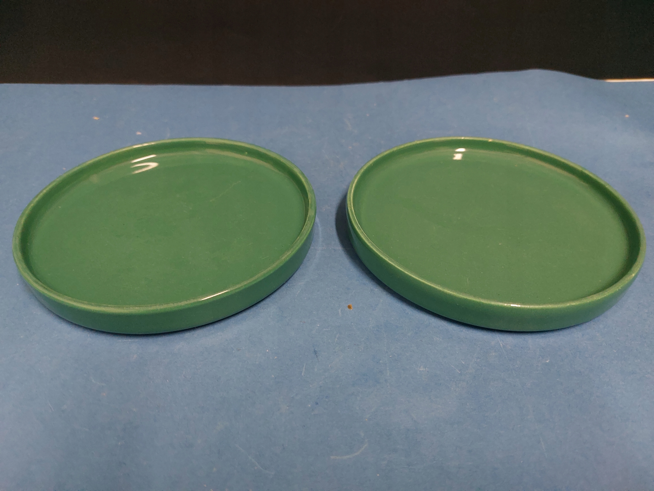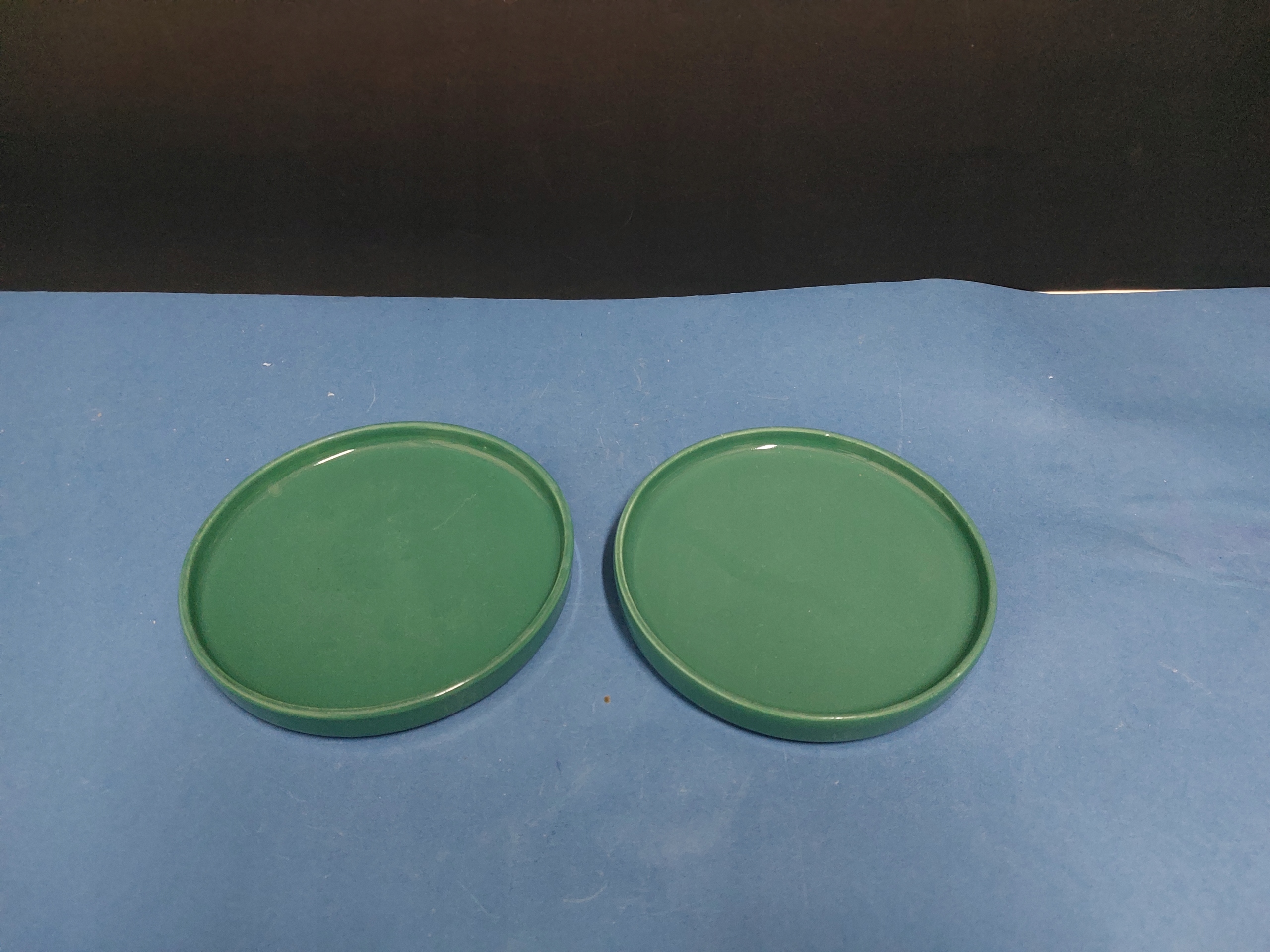 Dwa spodki, paterki ceramika w kolorze zielonym, pochodzi z Melitta Germany,