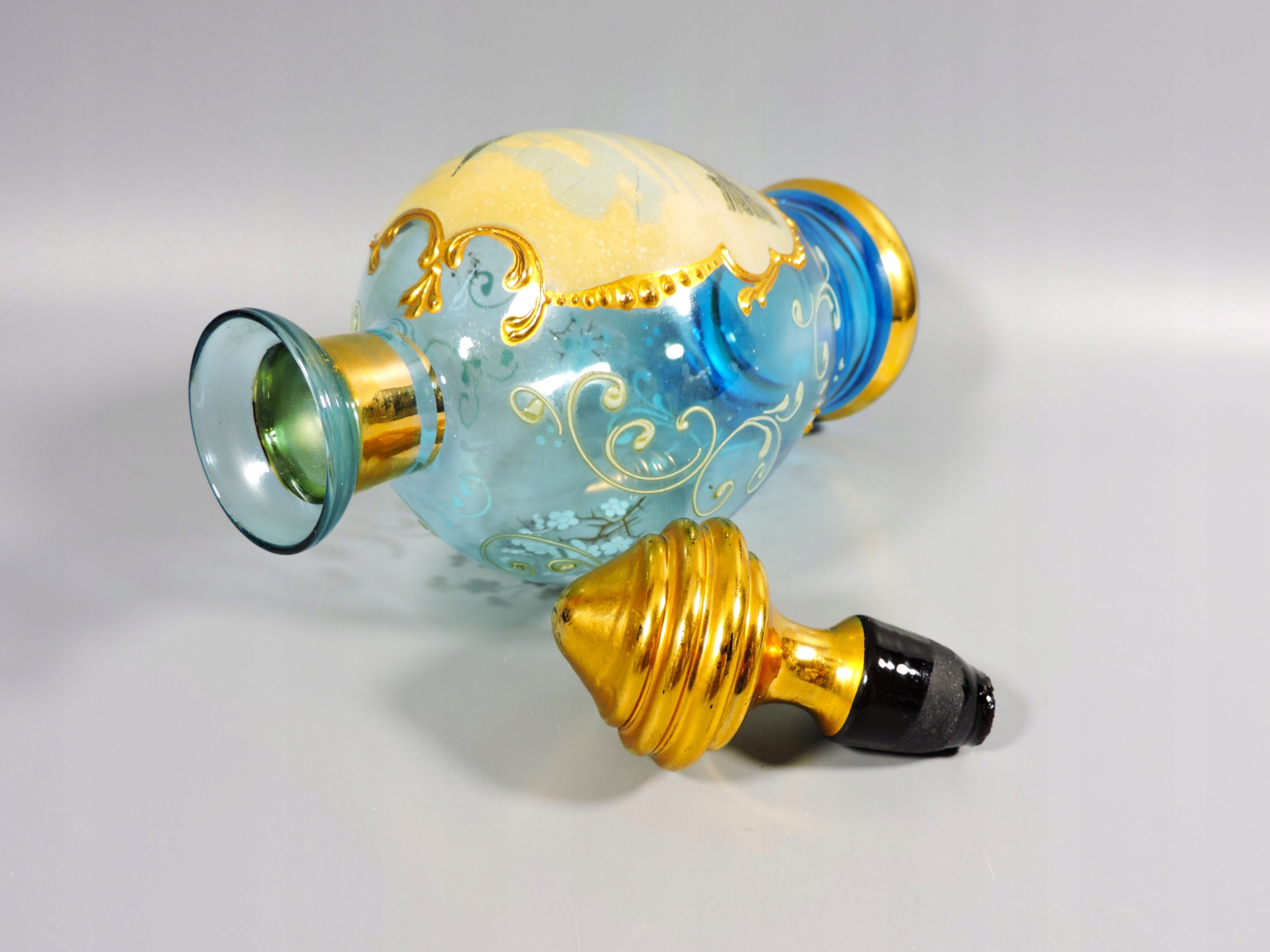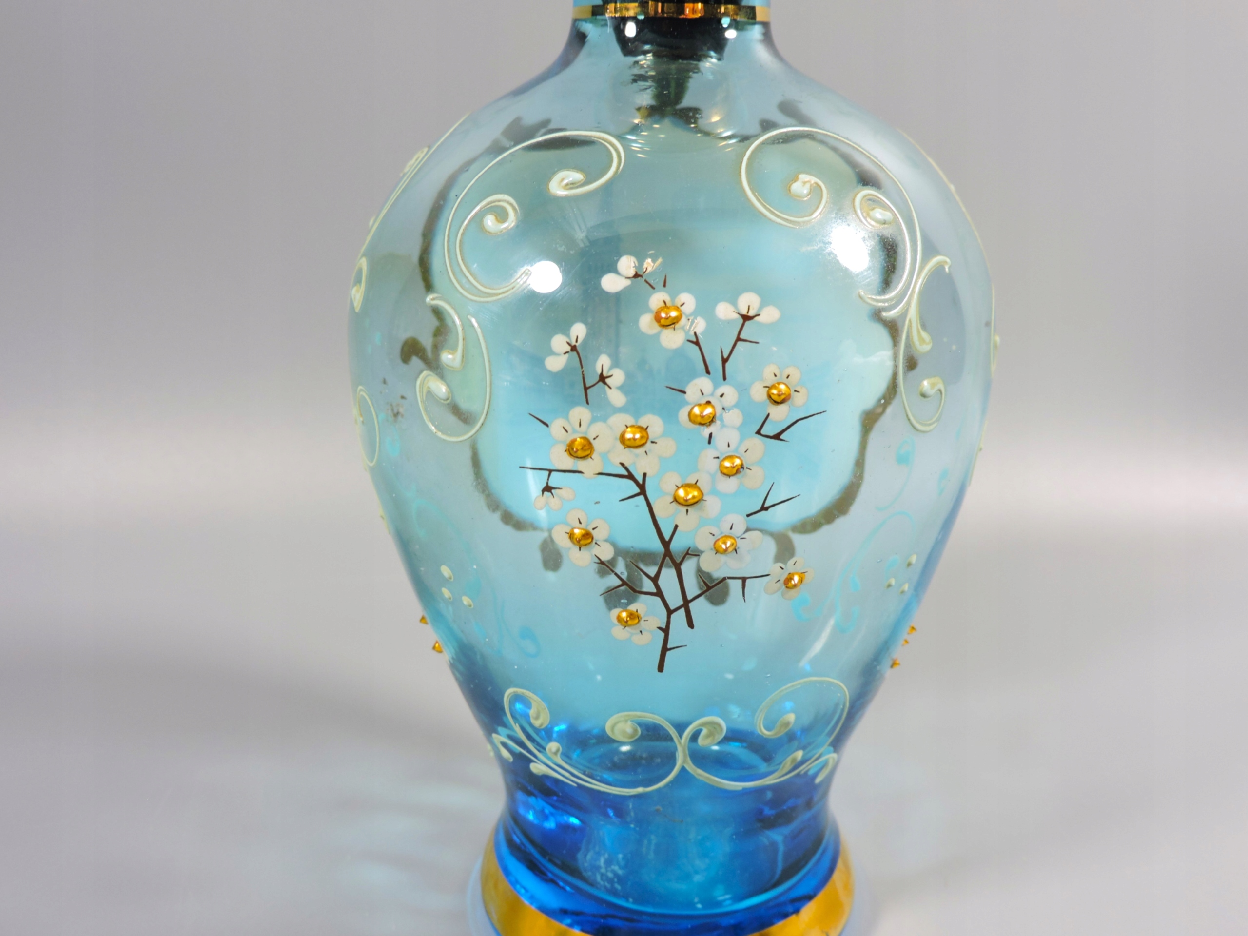 Karafka wys. z korkiem 23,5 cm, max. śr. 9,5 cm, poj. ok. 0,4 litra