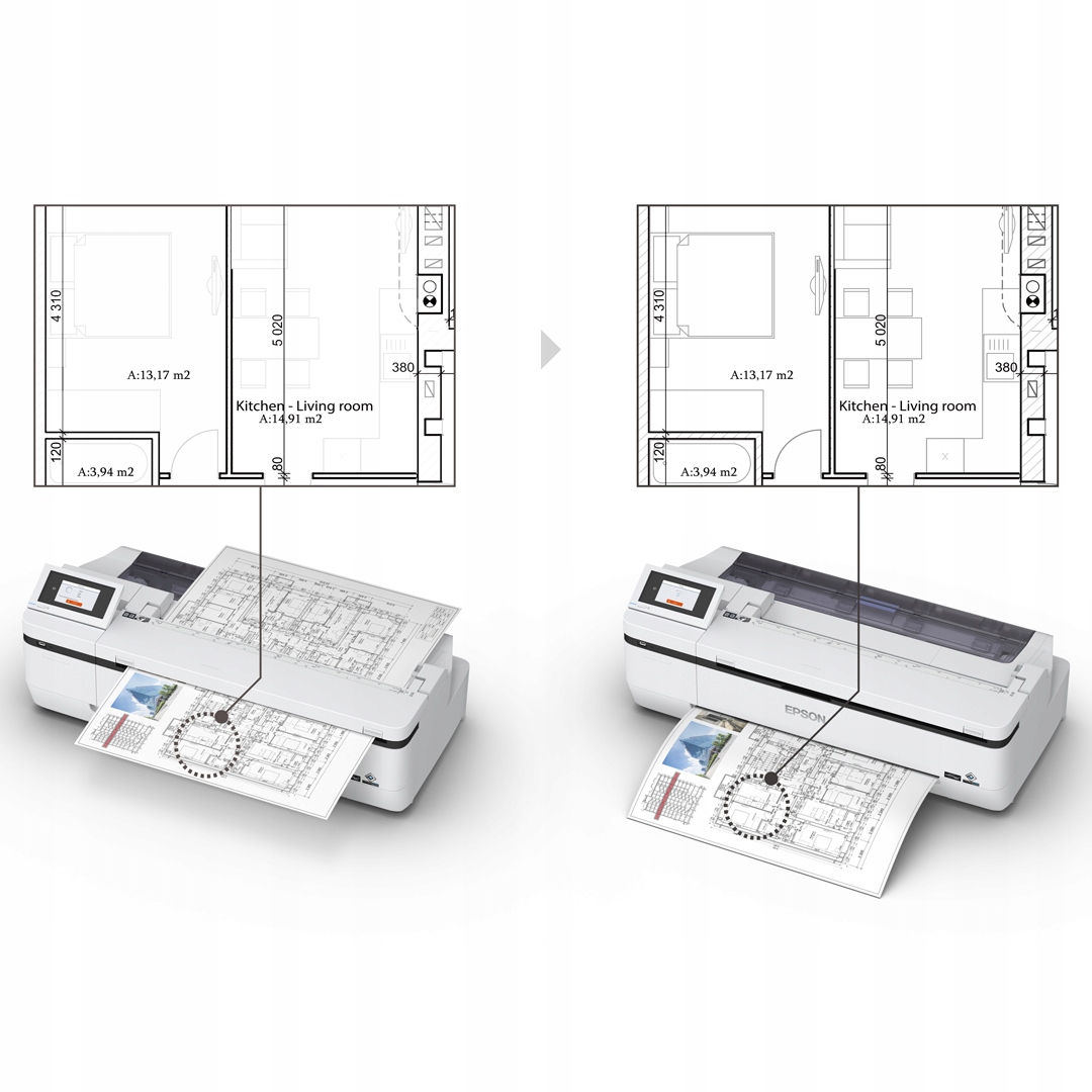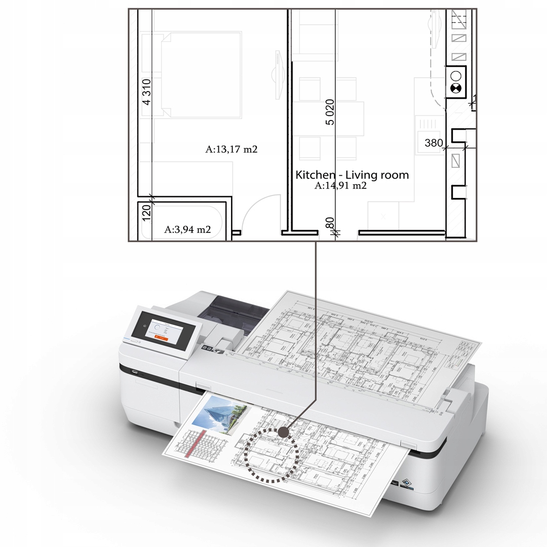 Ta 24-calowa drukarka wielkoformatowa została zaprojektowana z myślą o dokładności i dokładności. Pozwala łatwo i zachowując wszystkie szczegóły drukować i skanować dokumenty techniczne, rysunki architektoniczne, plakaty reklamowe i ogólne dokumenty biurowe. Drukarka SC-T3100M posiada wbudowany skaner CIS o rozdzielczości 600 dpi, który dokładnie odtwarza dokumenty (do 2,7 m) w różnych formatach i bezpiecznie przesyła je do różnych miejsc docelowych, a także skaluje kopie.