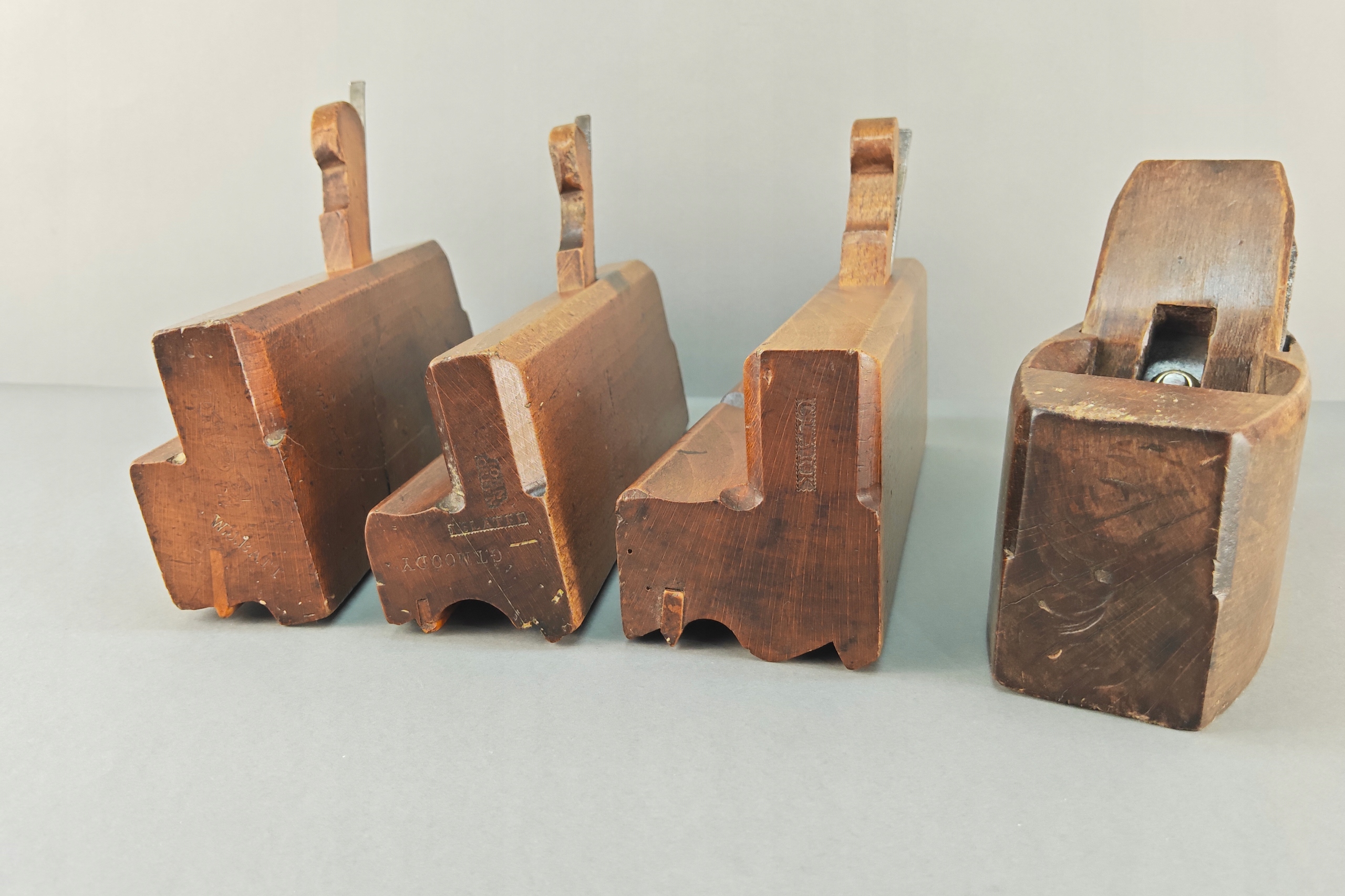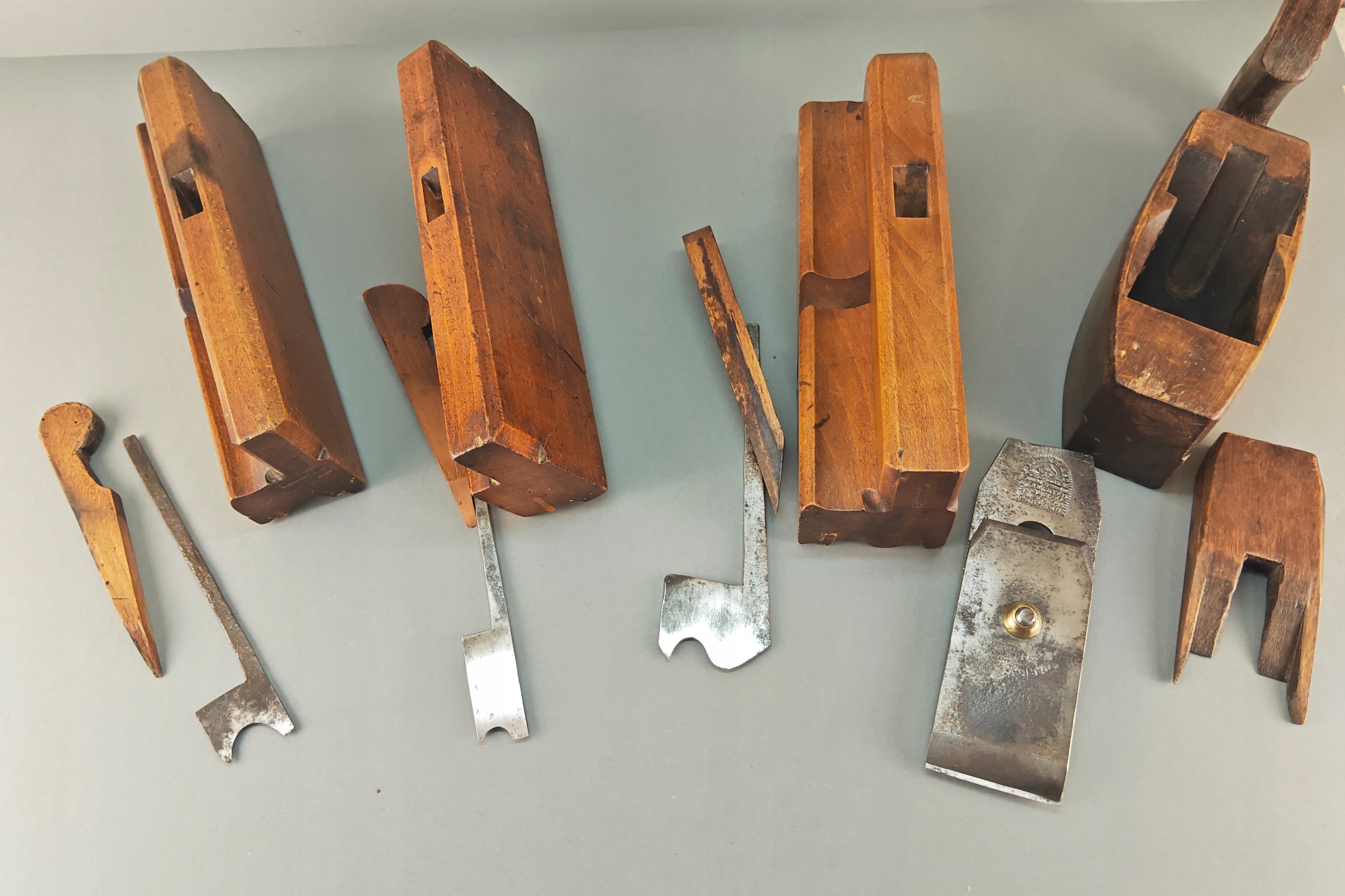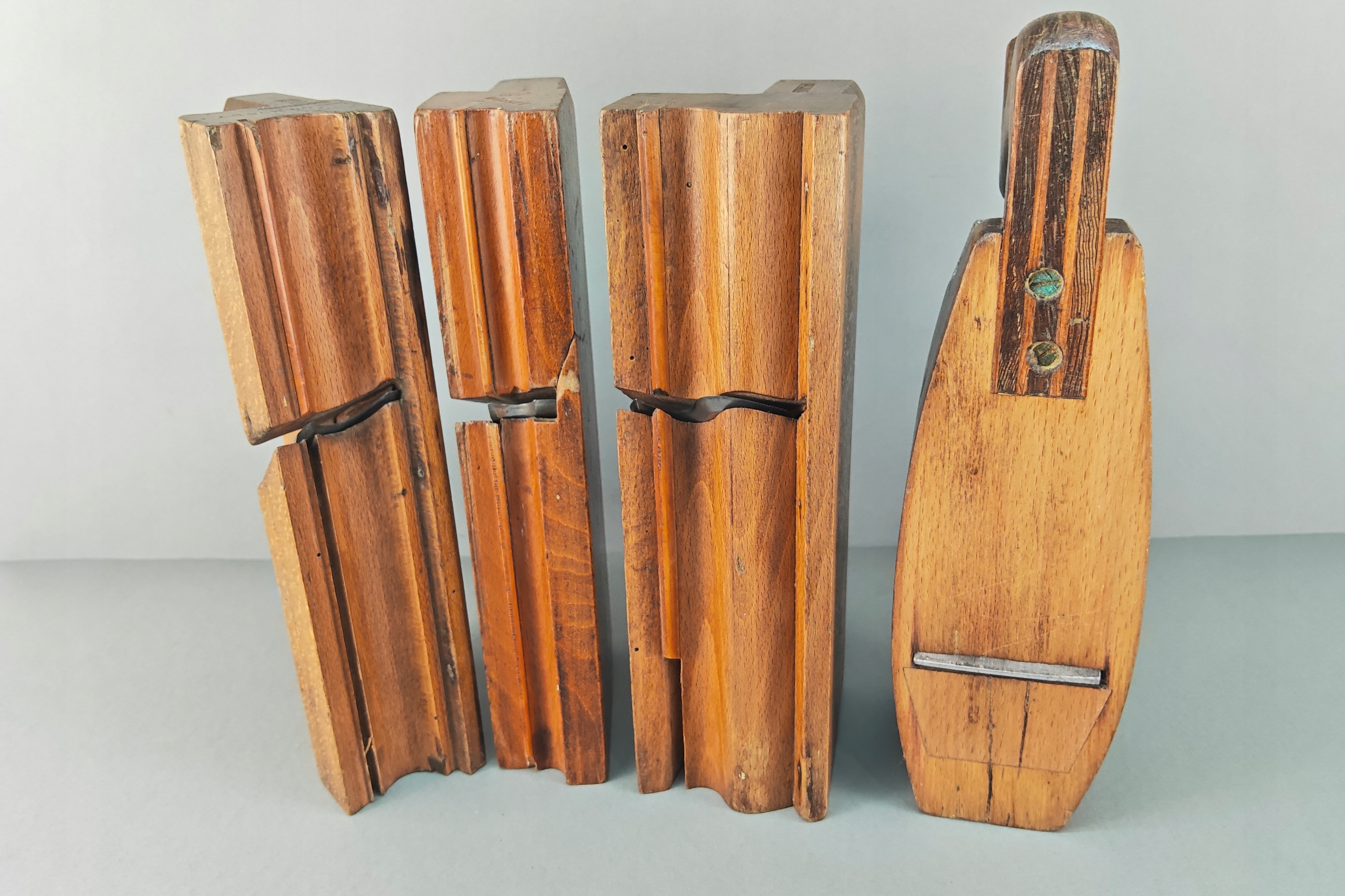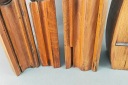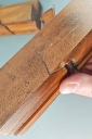 Do lekkiej renowacji, ślady po robakach, pęknięcia drewna, brak gdzieniegdzie płozy prowadzącej. Komplet 4 sztuki. Na pewno warto je odrestaurować.