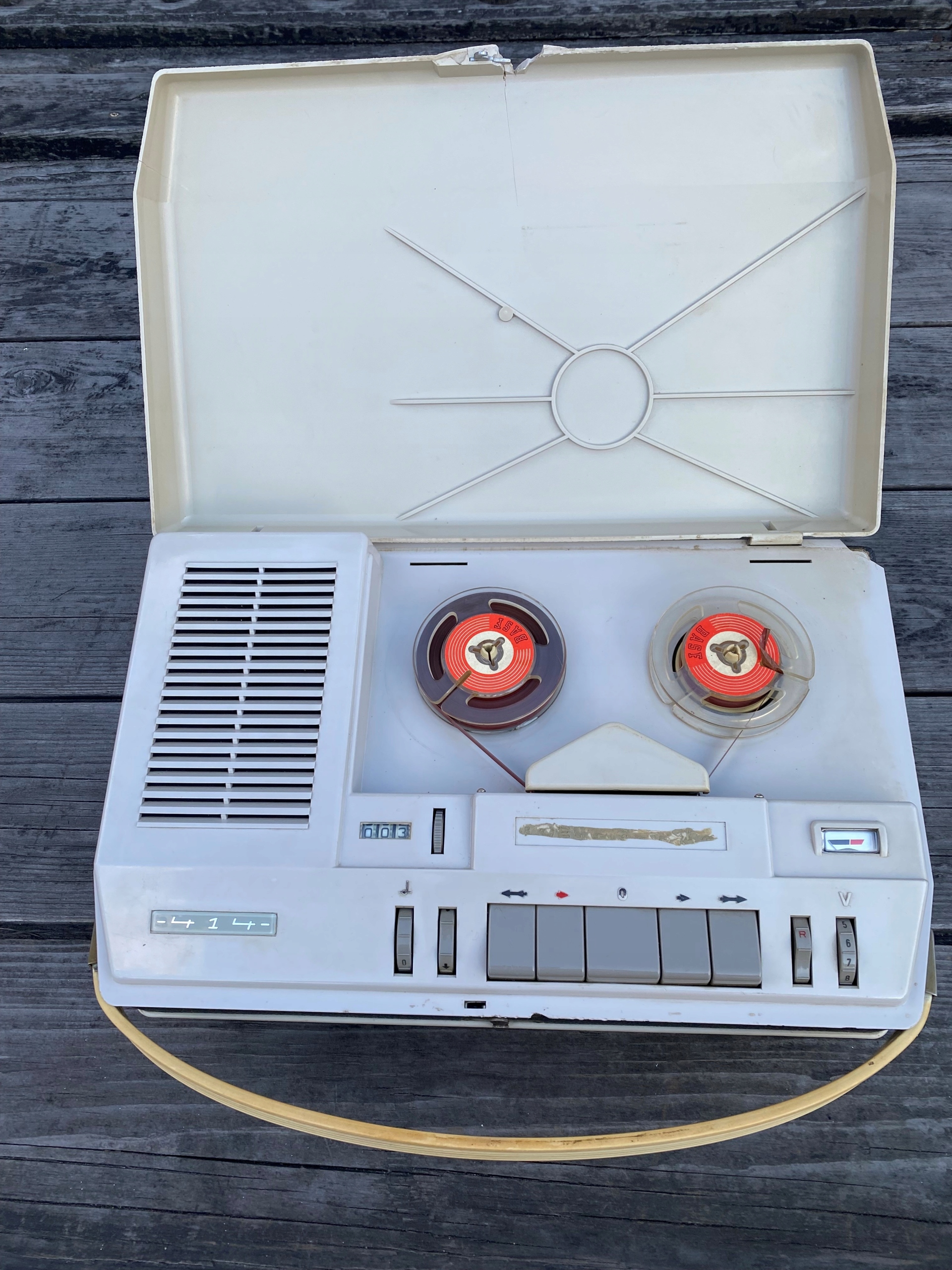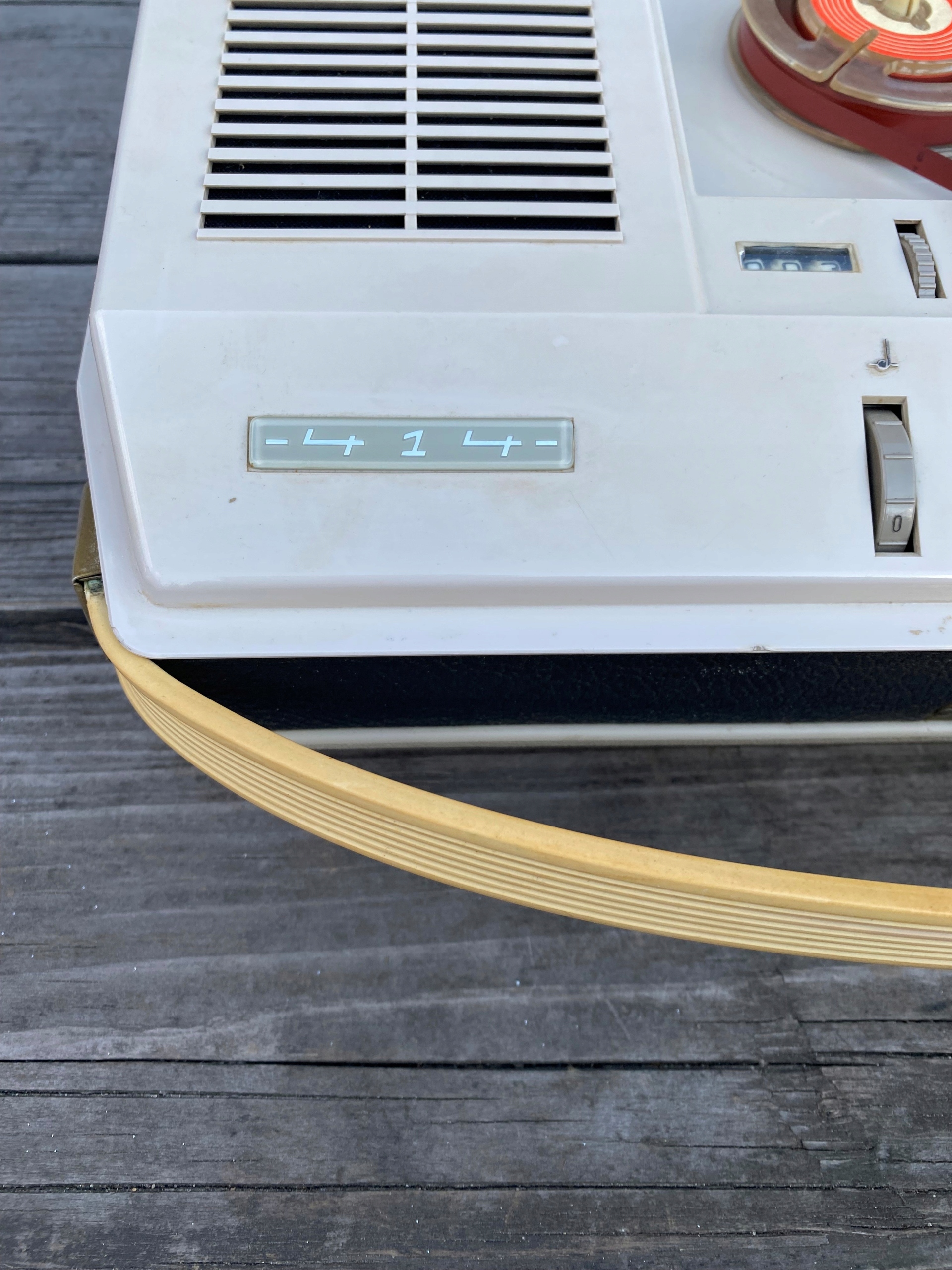 Rzadki MAGNETOFON przenośny Loewe Opta Optacord 414. Brak kabla zasilającego dlatego nie sprawdzony czy gra. Wymiary; wys.23 x 37 x 11 cm