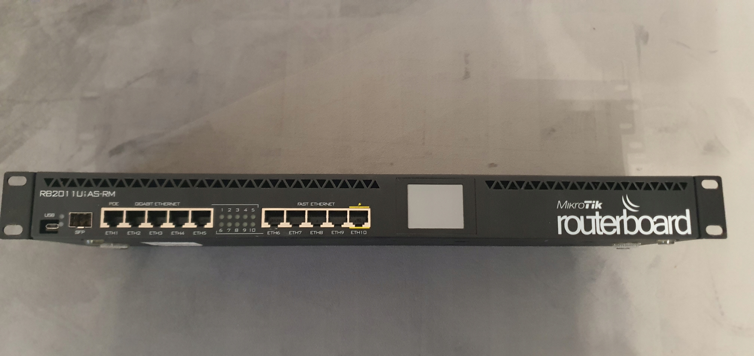 Do sprzedania używany, sprawny do ostatniej chwili w szafce router Mikrotik RB2011UiAS-RM. W niewielkich sieciach do 100 urządzeń sprawdza się doskonale. Wiele możliwości konfiguracji, jeden port z pasywnym POE do zasilenia urządzeń zewnętrznych np. kamera, AP, itp.