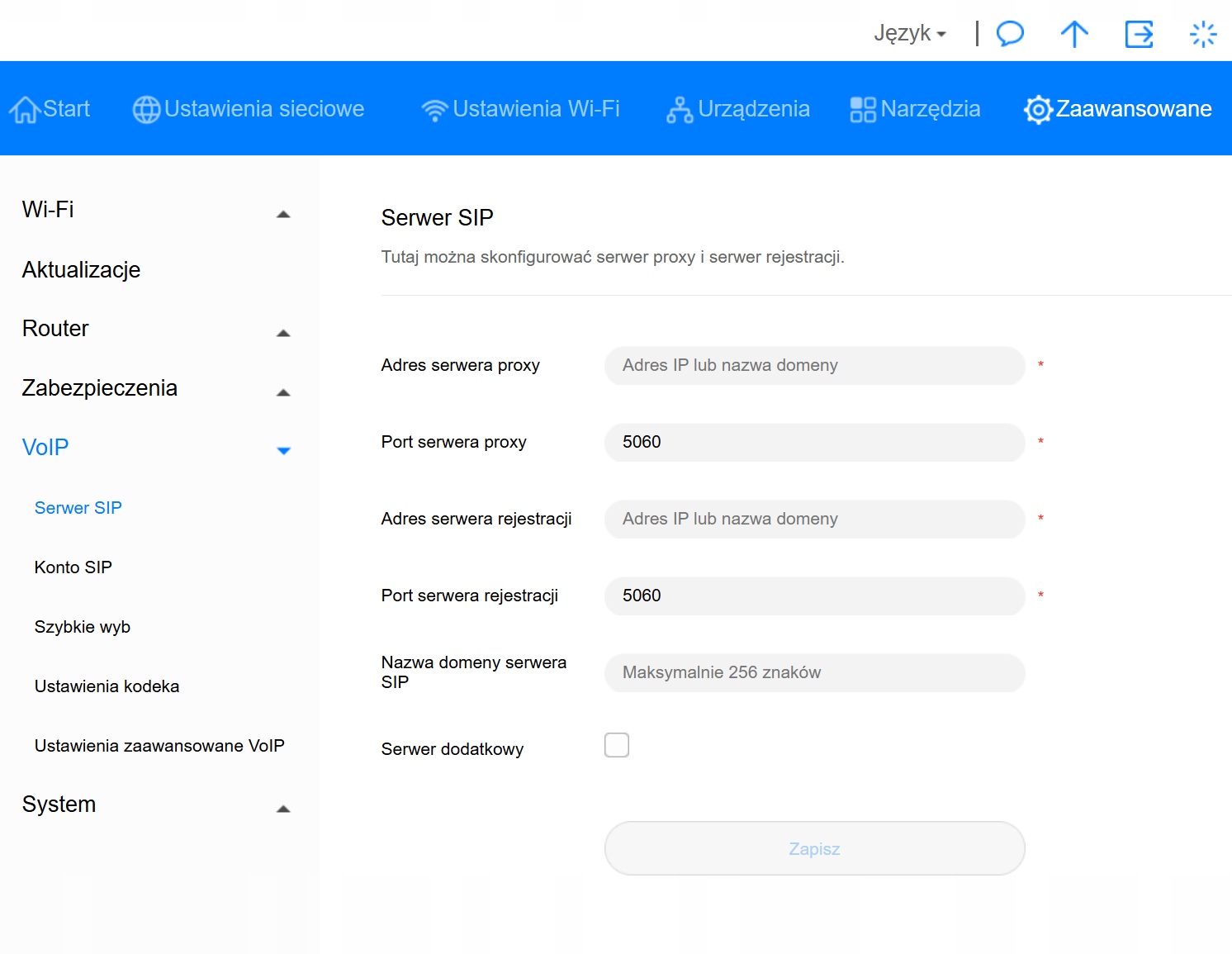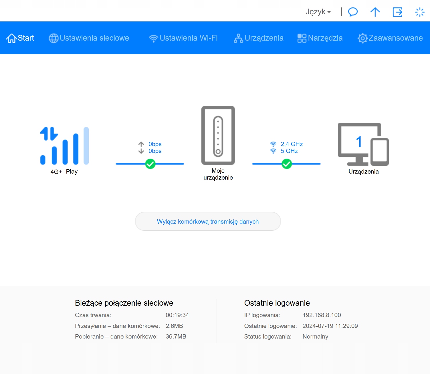 Router ma menu w języku polskim.