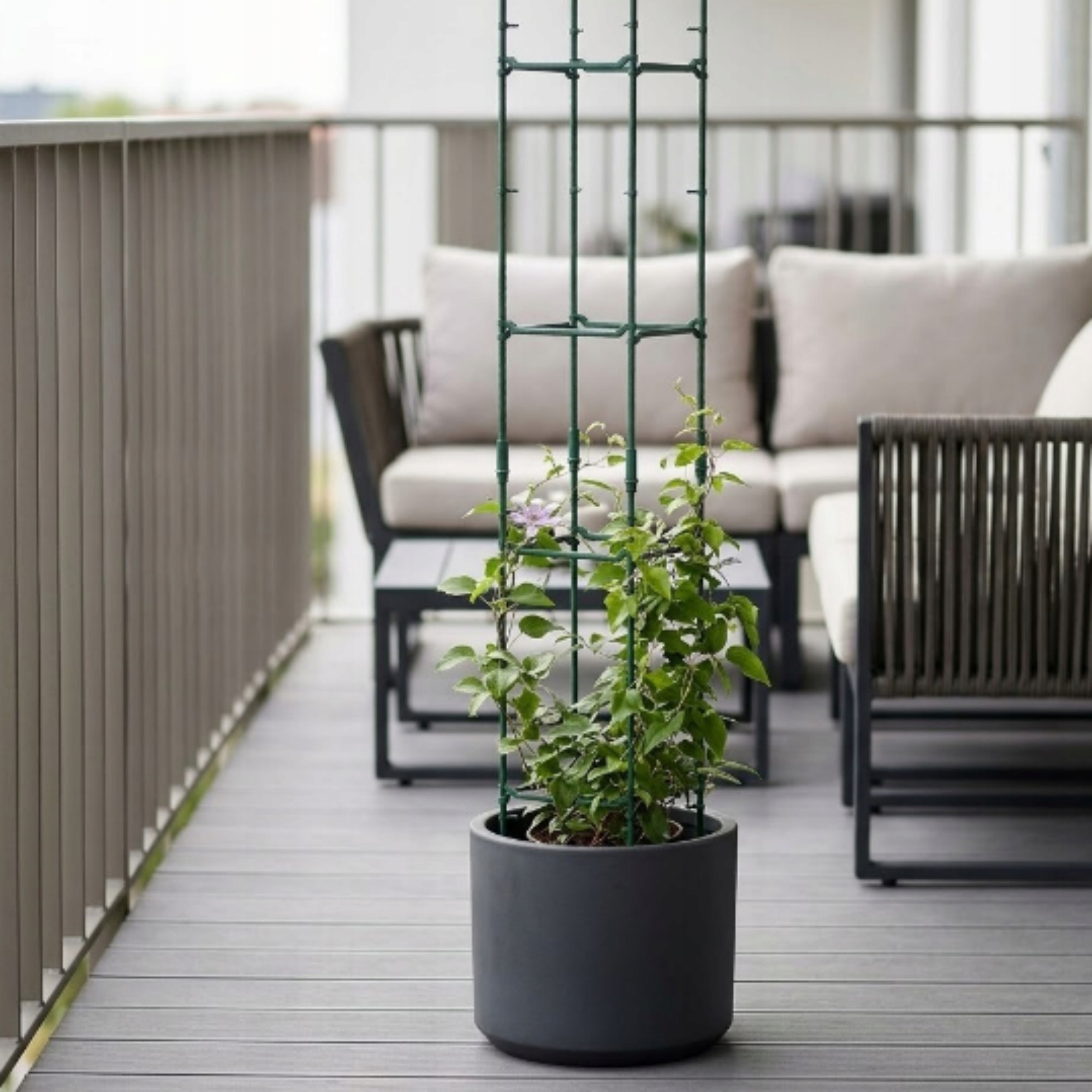 Przedstawiamy Ci zestaw dwóch modułowych podpór, zaprojektowany z myślą o wsparciu roślin pnących na każdym etapie ich wzrostu. Dzięki swojej solidnej konstrukcji i dyskretnej kolorystyce, podpory te są niemal niewidoczne wśród liści, pozwalając naturze grać główną rolę, jednocześnie chroniąc pędy przed złamaniem pod własnym ciężarem.