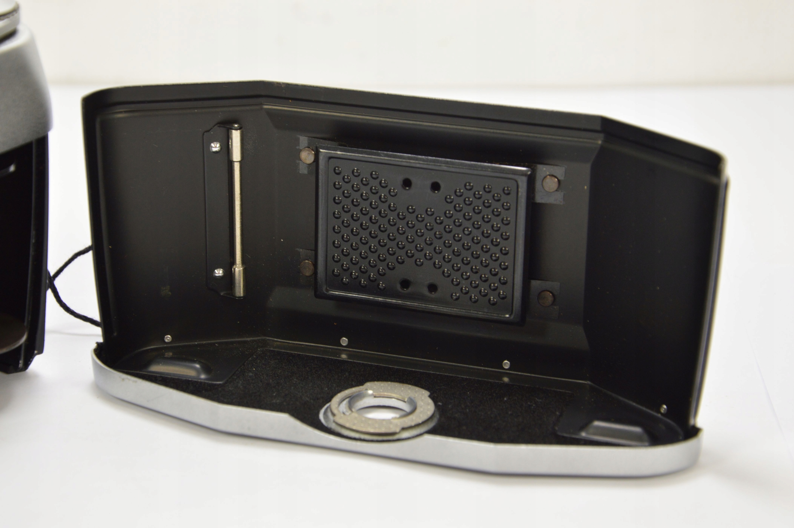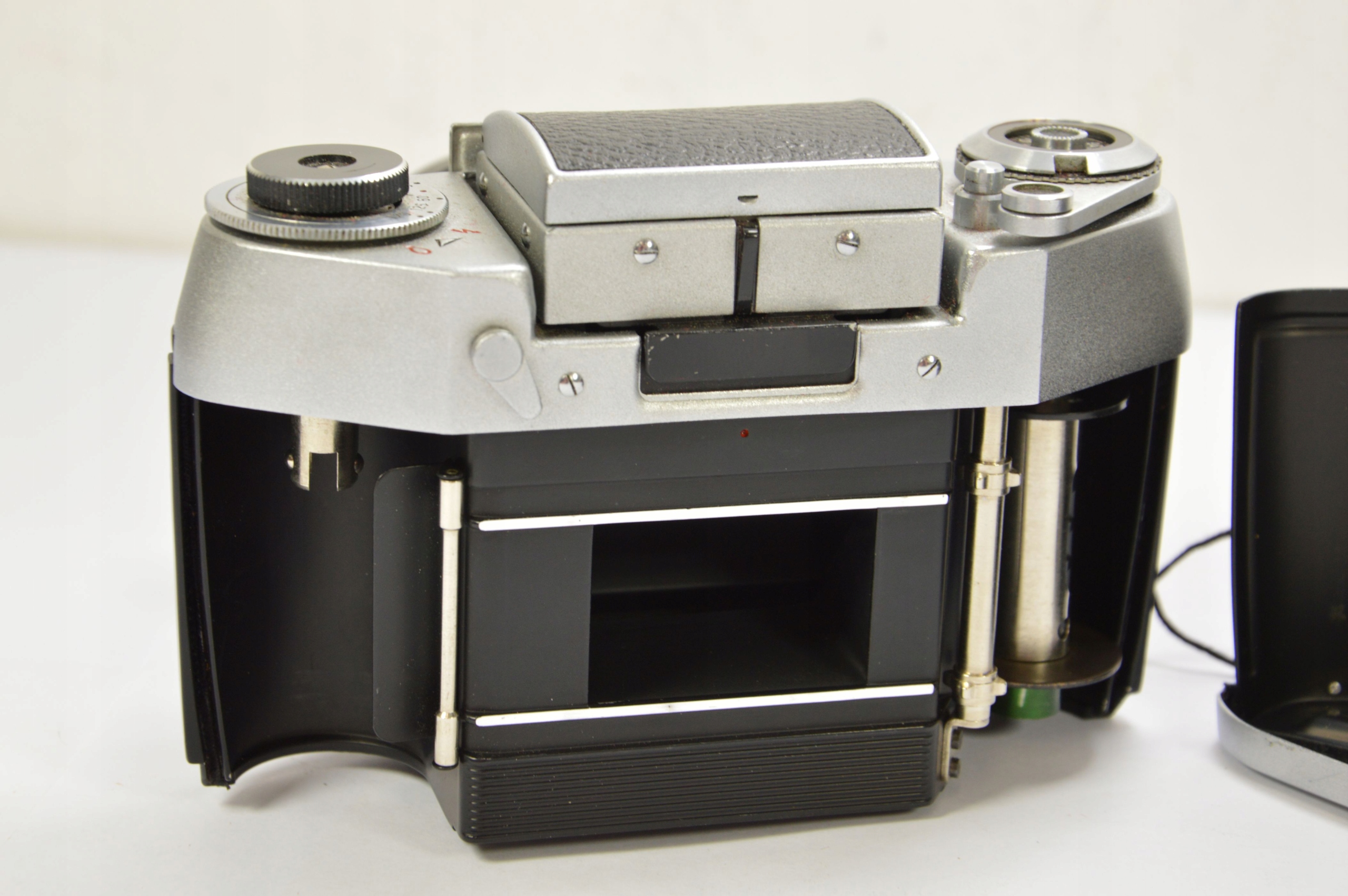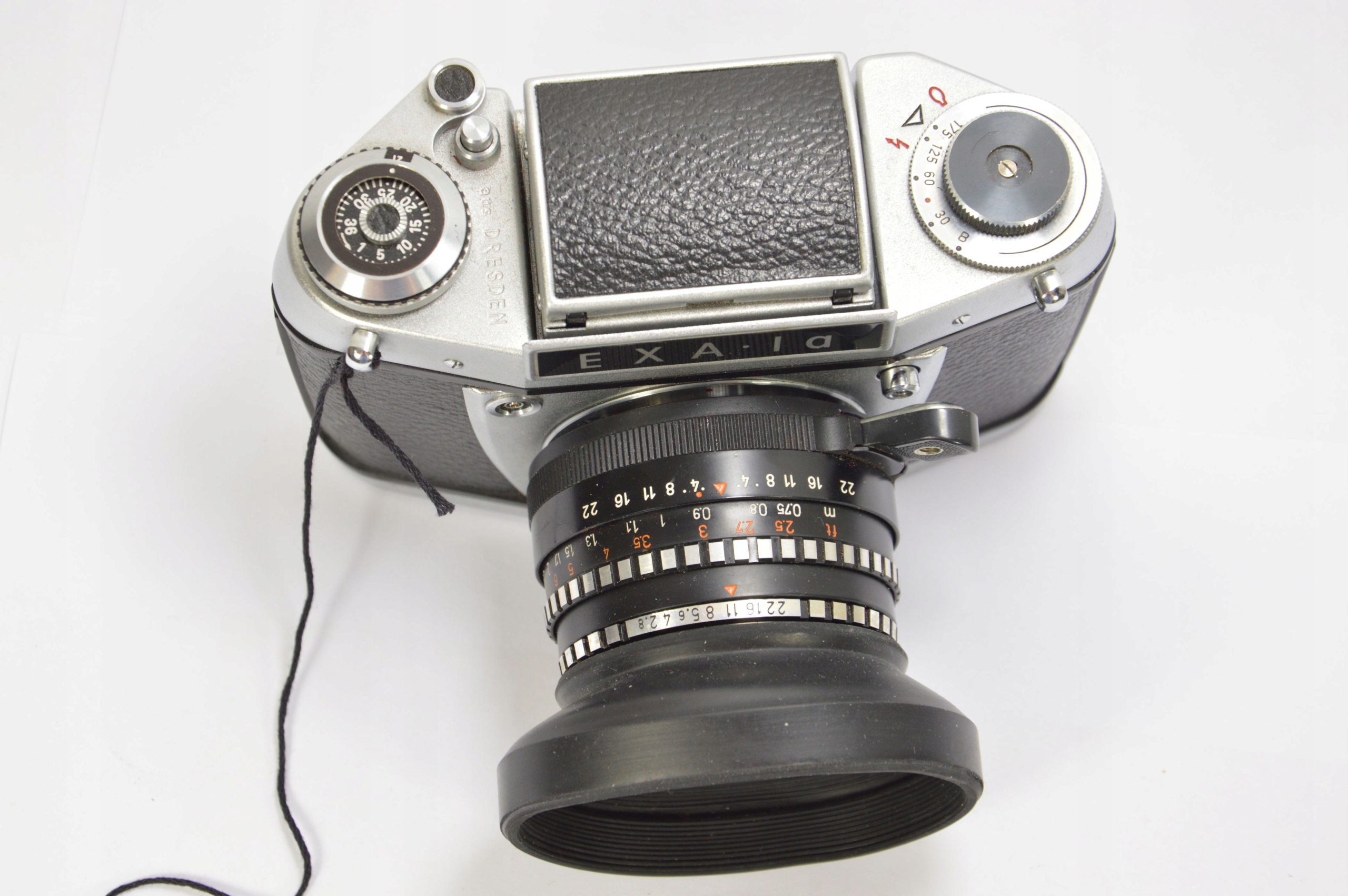 Aparat analogowy Exa 1 A z obiektywem Domiplan 2.8/50. Aparat sprawny, obiektyw czysty, całość zachowana w bardzo dobrym stanie, w zestawie oryginalne etui na aparat oraz gumowa osłona przeciwsłoneczna.