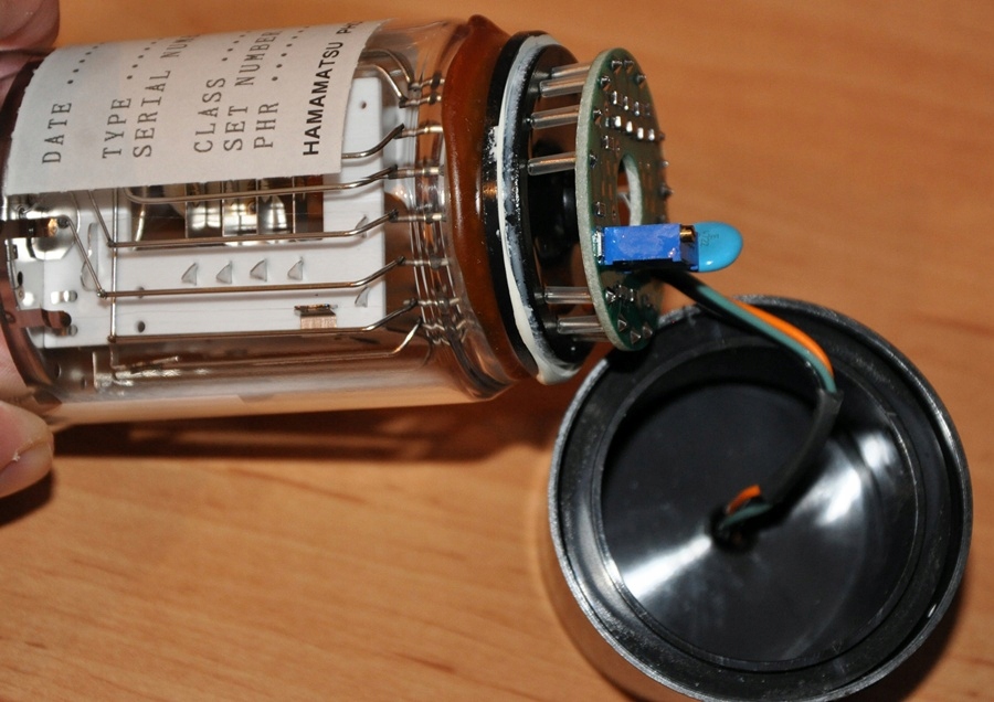 Используется, полностью исправный, в отличном состоянии фотоумножитель с символом Р-1538-13. Фотоумножитель уже содержит плату с набором резисторов для питания его отдельных динодов, как это так что вам нужно только подключить питание и получать сигналы.