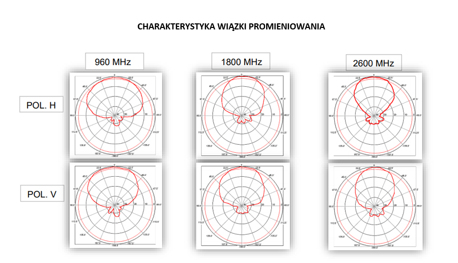 Zakresy częstotliwości pracy: 800, 900, 1800, 2100 2300, 2600 MHz.